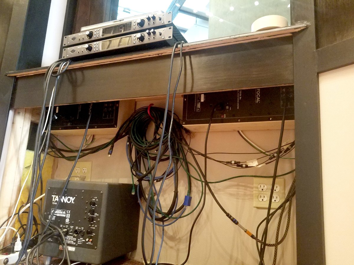 i'd check to see if the amp on the Focals can be moved or not and if not, consider some passive JBL, ATC or PMC monitors (or a passive 1032 sized monitor) and w/ minimum 8" LF or better 12" for soffit mounting.