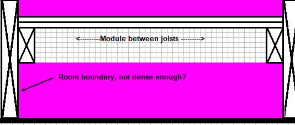 So, say you have fairly deep joists, like 2x10, and raise your modules to the top, leaving a gap below for insulation. Won't the outer perimeter be of insufficient density? There would only be one layer of 2x lumber between the inner leaf and the air gap. Hopefully this makes sense. I added a drawing below.