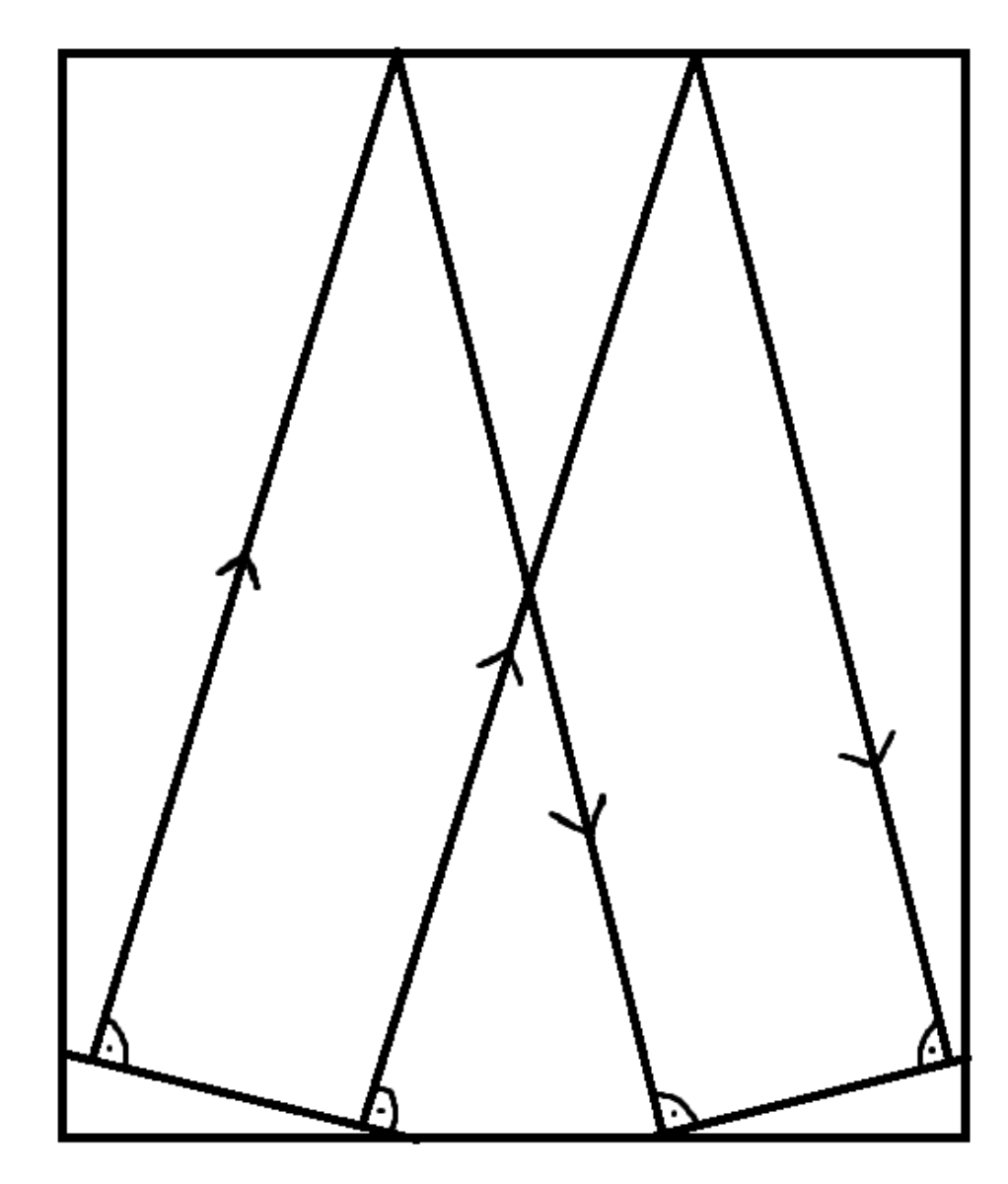 It got me thinking and I came up with an idea, that is actually widely practised, but it occured to me that it might just be connected to this very topic. I am talking about oblique panels usually put on the front wall of a control room in studio designs. It occured to me, that having those panels angled adequately, effectively creates a faux fourth pair of parallel walls in the room, which would create yet another set of standing waves, and thus, increase the modal variety in the low end. I have made a very basic visual representation of what I mean in MS Paint, attached. And so, sound waves reflected perpendicularly from those panels and then reflected by the wall on the other side of the room would again fall perpendicularly on the other panel and so back and forth, creating a standing wave. Simultaneously, the real wall is still "active", since 1) there is a large chunk of it left uncovered, 2) we are considering mainly low-end frequencies, for which a barrier of a single sheet of drywall or MDF isn't really an impermeable obstacle. In my example rooom of 600 x 500 x 400 cm it would add another dimension to the room, which would be ca. 1190 cm, so almost double the length of the room!