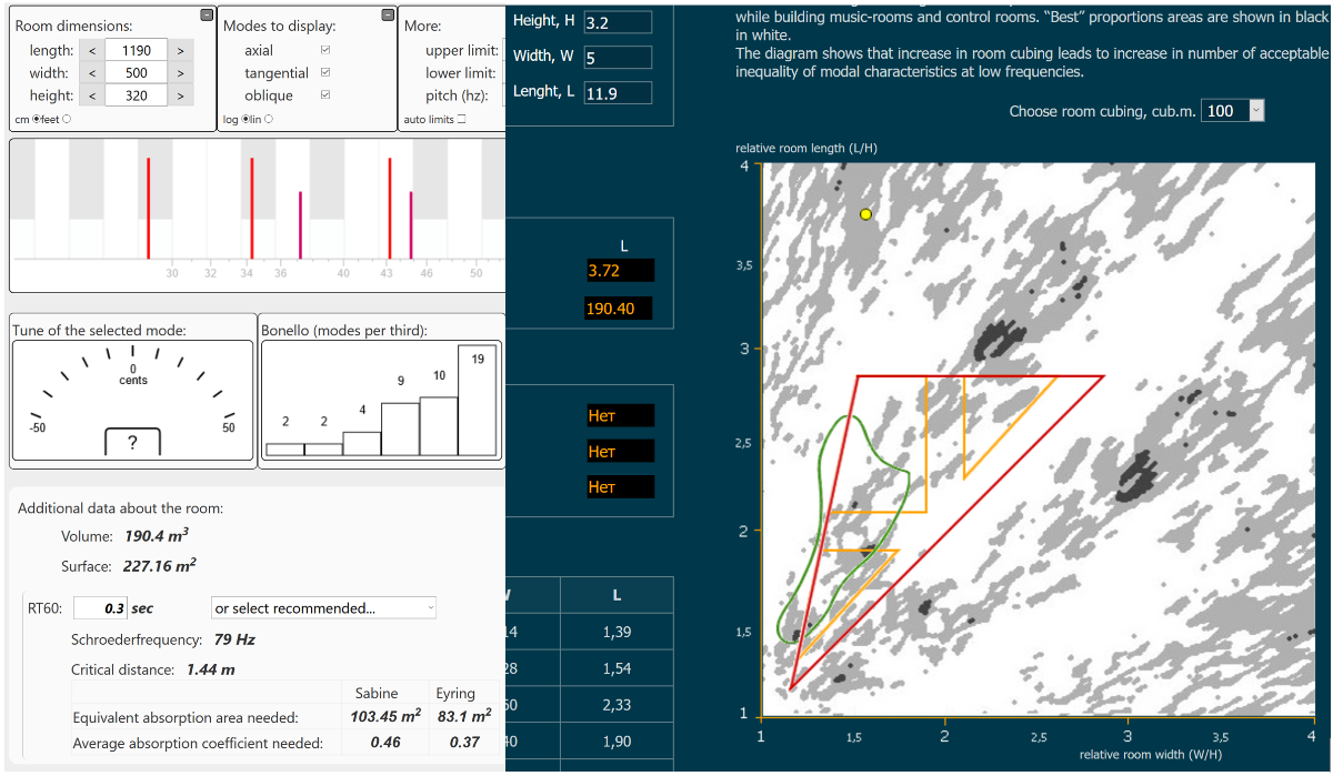 Soundman2020 wrote:Source of the post It is impossible to have a "perfect" ratio in a small room, simply because that would require enough modes to have three modes for every note on the musical scale, (ie, the Schroeder frequency would have to be lower than 20 Hz...) but that's the entire problem with small rooms! There just are not enough modes in the low end. So you can choose a ratio that spreads them a bit more this way or a bit more that way, but all you are doing is re-arranging deck chairs on the Titanic, in pleasant-looking patterns. The problem is not the location of the deck chairs; the problem is that your boat is sunk! :) Likewise for your studio: the problem is not the locations of the modes: the problem is that your room is sunk. No matter what you do with the dimensions, you cannot put a mode at every note, unless you make the room bigger. It is physically impossible.