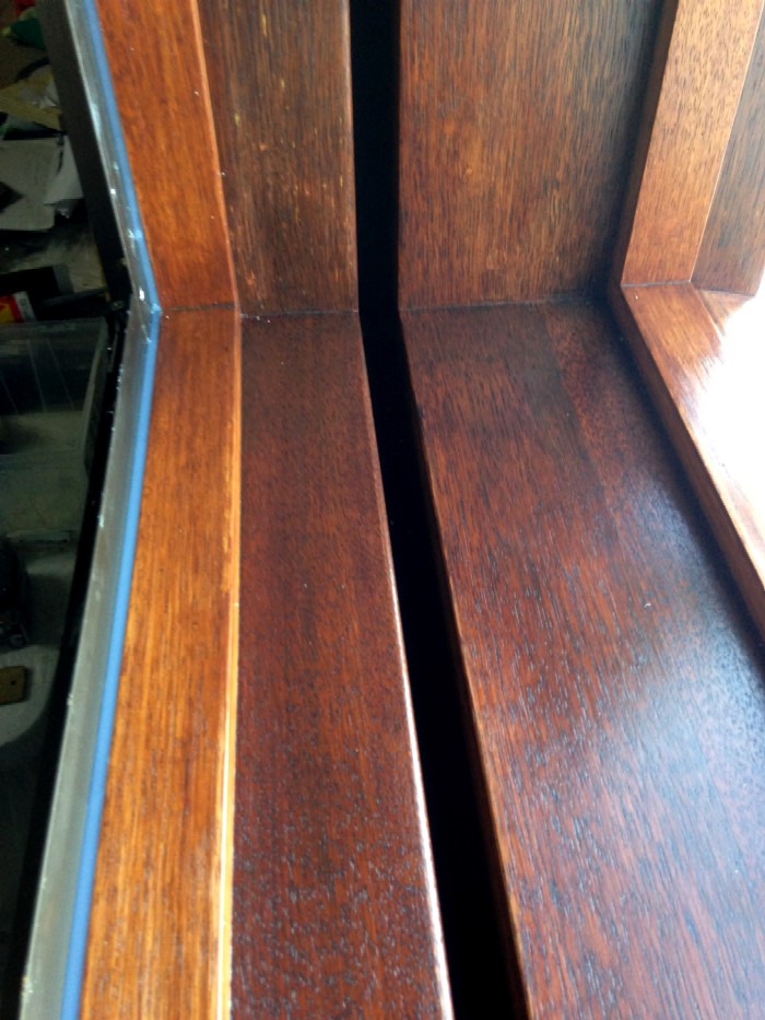 You will also need some type of desiccant to put in the gap between the window panes, to adsorb any moisture in the trapped air. If you don't do that, then the glass can fog up on the inside surfaces under some climate conditions, and perhaps even have condensation droplets forming on the surface, then running down the glass... leaving permanent dirty marks! So it's important to get the desiccant in. Silica Gel is good, and there are other types too. You need to calculate how much to put in. It's not a lot, and it's not expensive, but you do need to get the amount roughly right: too much could potentially cause the wood to dry out excessively, and not enough means... well.. misted windows with condensate tracks! I don't have photos of the desiccant going in, unfortunately. We missed that here.