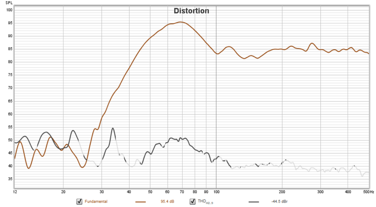 That's pretty high (the lower curve). Just the distortion on your sub all by itself is actually louder than the mains...