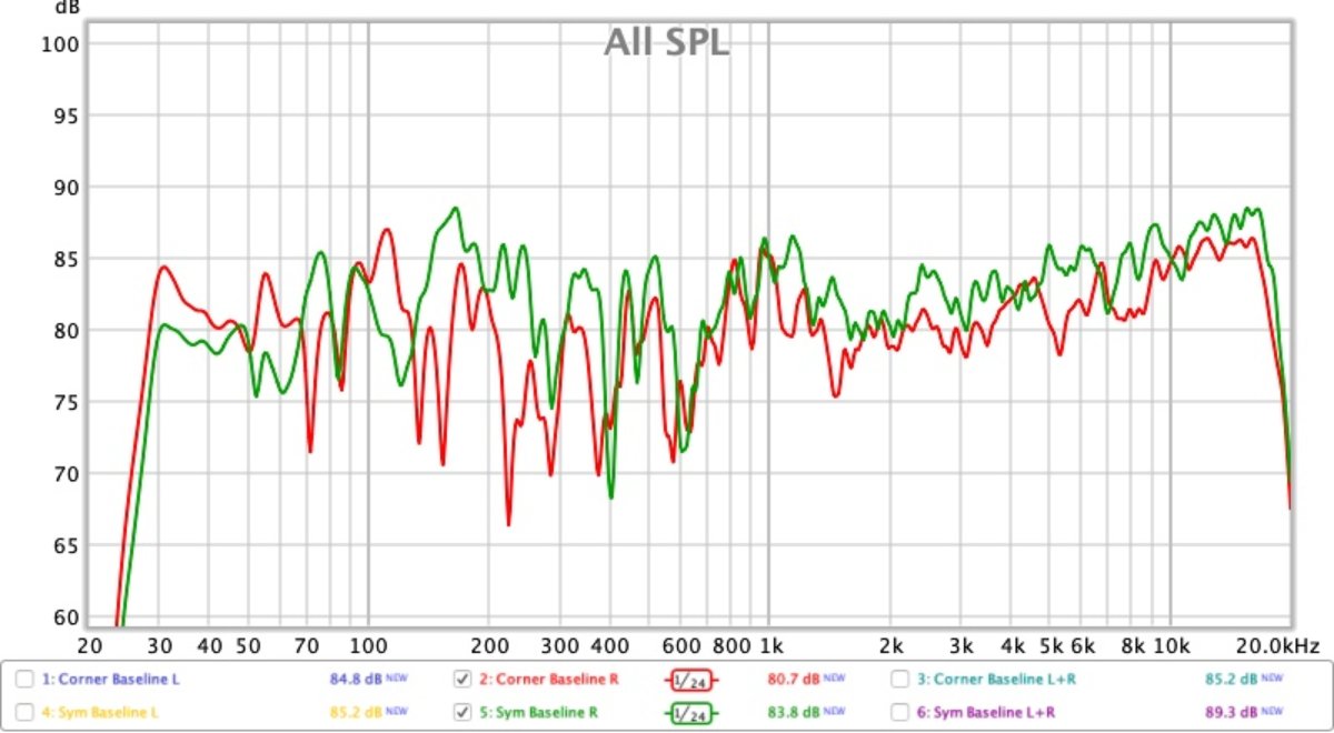 The corner position seemed to raise the DB level by 1-2 db so I had to re-calibrate REW to compensate for this.
