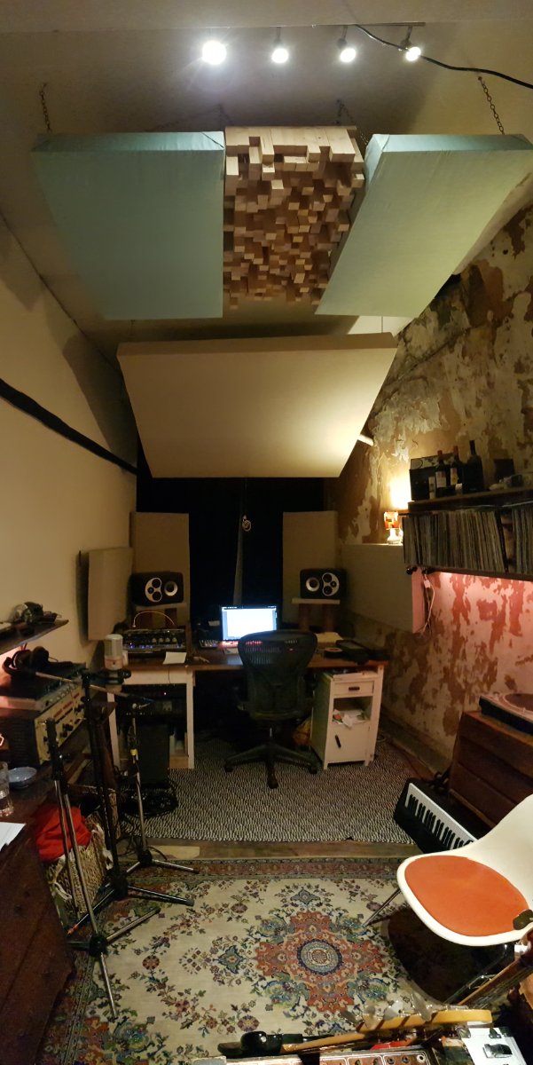 The bass was definitely different in the Corner tests. In some positions it was smoother for sure. But the big drawback that I immeadiately noticed was the loss of definition in the mids. You can see this on the tests. A big dip in the 2-4k region. This really surprised me and I have no idea why this has happened. I moved the side absorber panels back when I moved the speakers back so I don't think that's it. One thing that I couldn't move is the cloud. In the usual (1st) position the speakers are just under the front end of the cloud, but in the corners they would be approx 40cms in front of it. The cloud is very large and would certainly be blocking first reflections still in this position. No idea how to explain this loss of mids but it really ruins this corner position. I will take smooth mid response over smooth bass any day, but I am determined to try and get both!