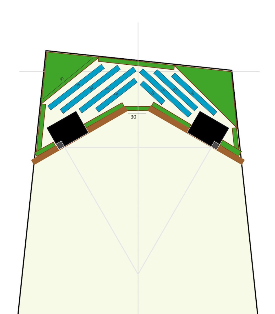 ericwisgikl wrote:Source of the post I put your measurements into Sketchup, traced side walls lines till they meet, measured the angle, which is about 11.5º, and traced a line al 5.75º, the half of them both. Then I took measurements from right side wall to this centre line, and that is your new center.
