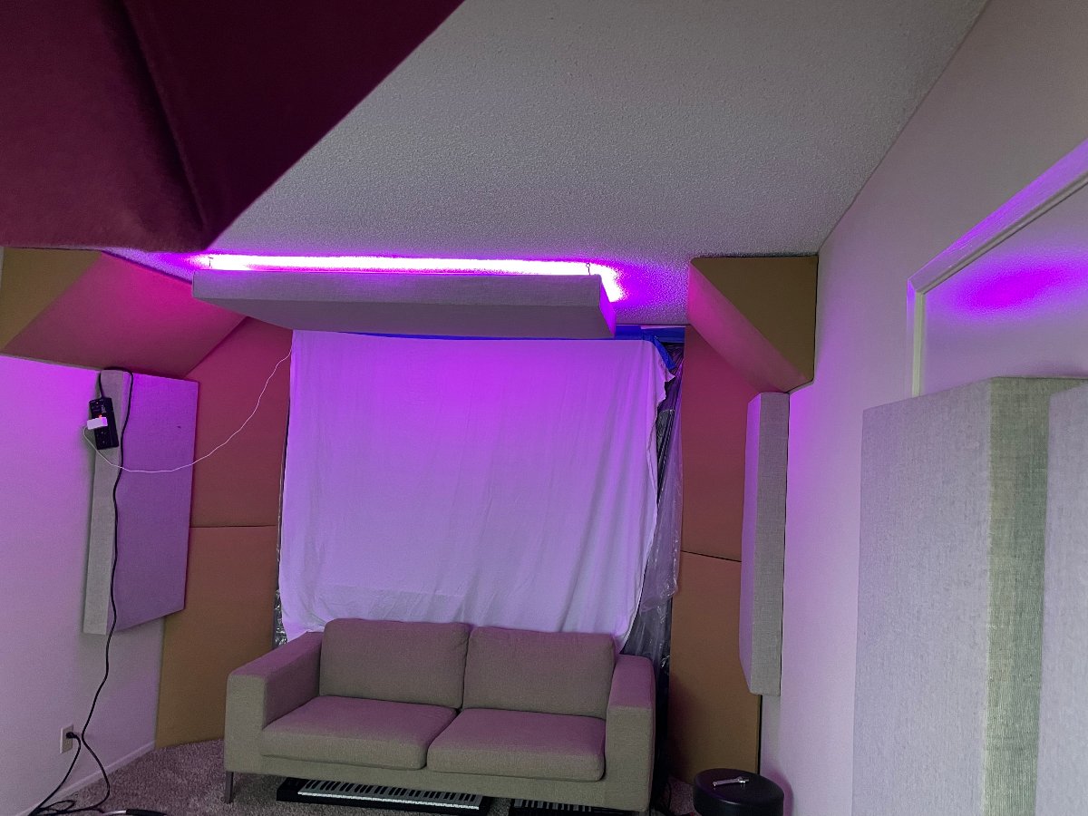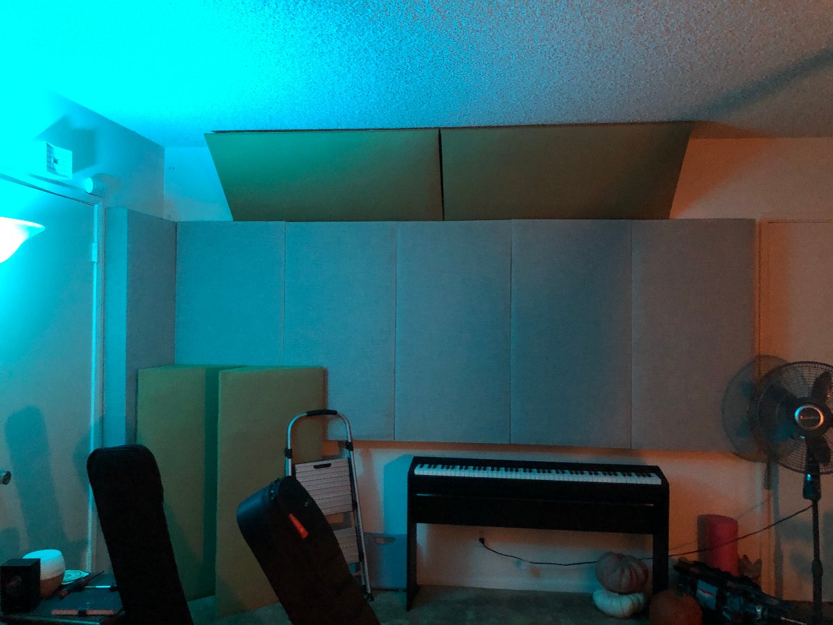 What a pain removing hundreds of staples. I also hung my old cloud in the rear of the room near the couch, to try and help any ceiling reflections if I'm recording a vocal or acoustic guitar back there.