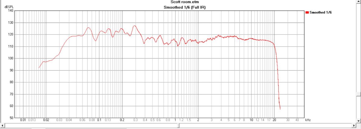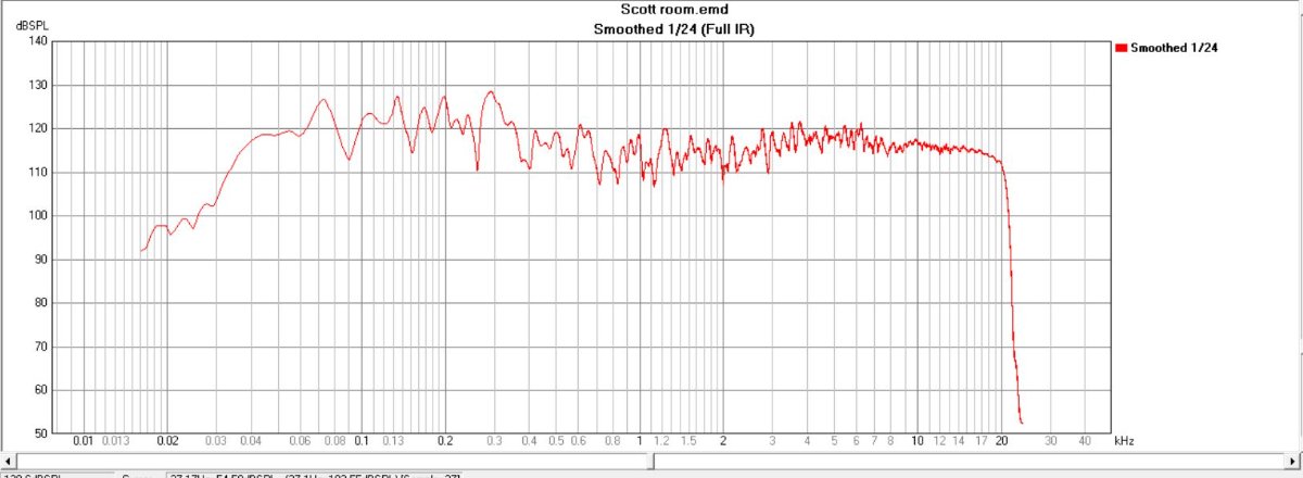 Could you also create a new frequency response graph smoothed to 1/24 instead of 1/6 octave as this will reveal much more detail. The same for the RT graph he said the industry standard is 1/3 octave resolution and smoothing at 1 octave is hiding a lot of details so if you do this at standard resolution this would be very helpful to see how the room is really performing.."