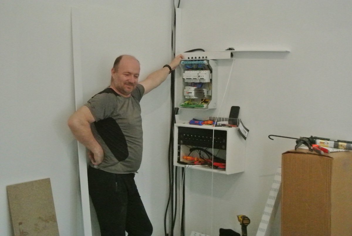 Sadly, because we will take a few days to get the floor down in the live room next week and I am playing a gig in the UK, Joules will not be here for a couple weeks but the ventilation ducts, tubes and fan is all installed and only the speed regulator is missing now. All the cables are done in the live room and the wires run through the floor to the mixing desk area.. A lot of good progress now.. See some of the new pictures.