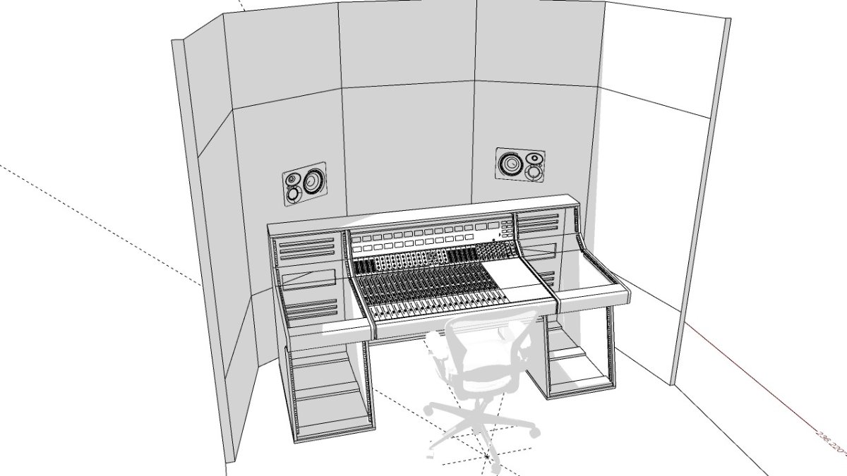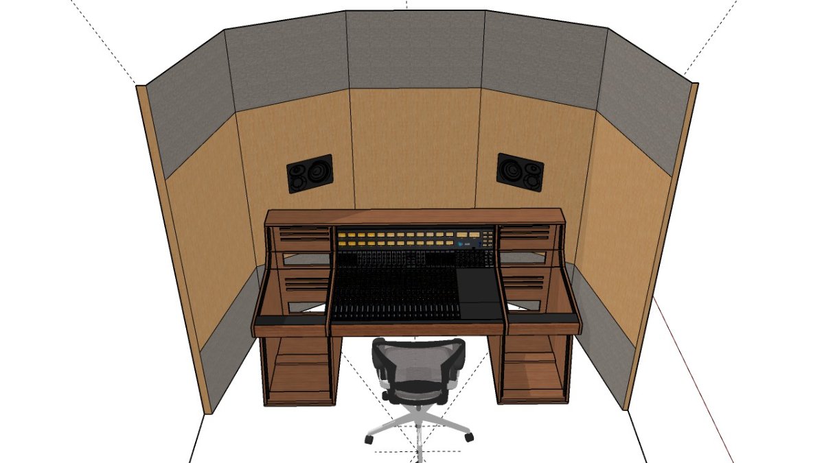 as a note, you can add angled interior windows to match the side wall absorption if you are not planning on closing the windows off - and possibly some heavy draps when you need more attenuation of the solid surface reflections.