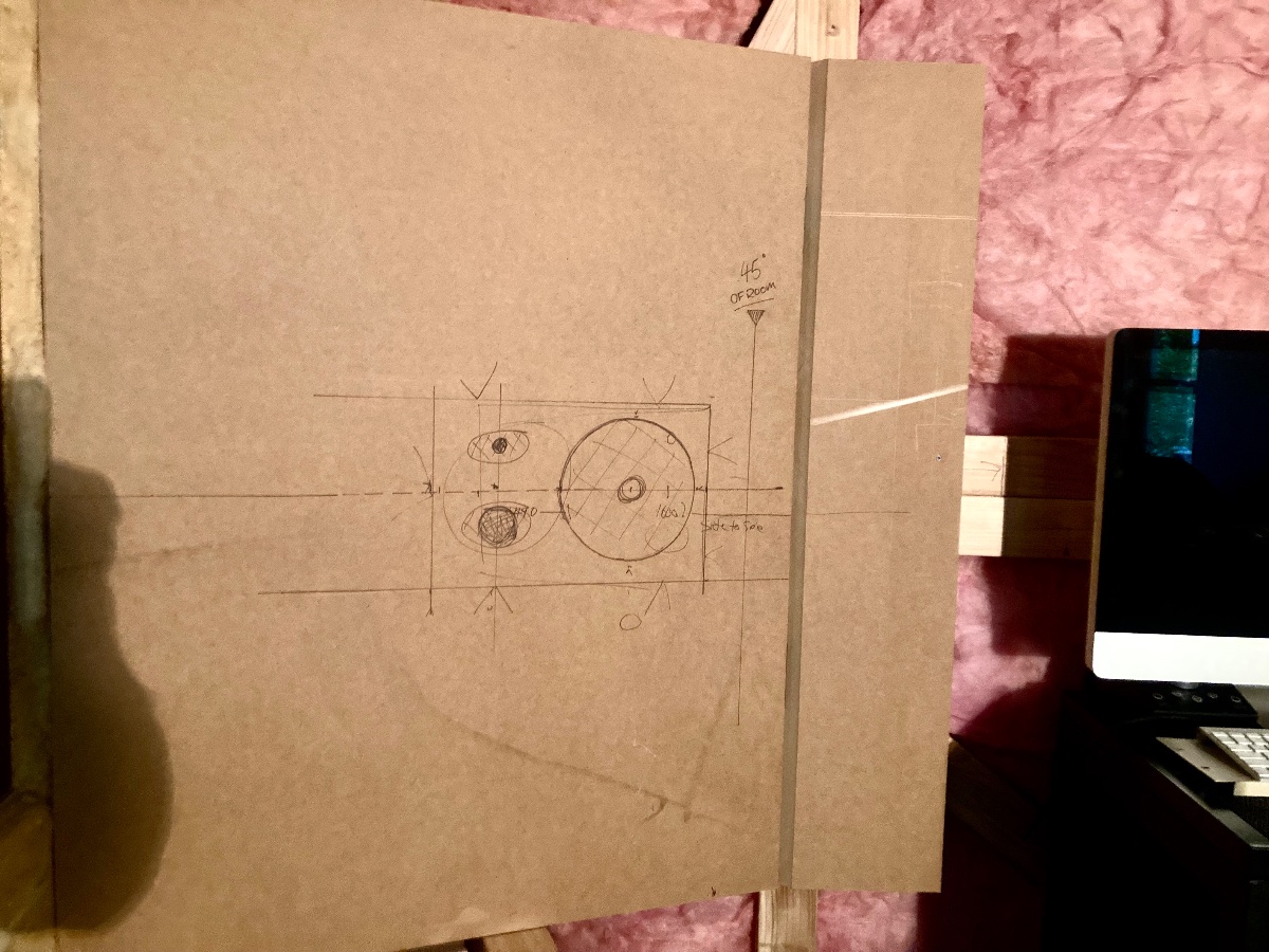 Cheers, those drawings are super helpful, but I have an issue. Can I run my woofers on the outside to get them further from the 45° line from of the corner of the room and the tweeters closer to the equilateral triangle of the LP? I don’t think I’ve got the room to come inside the 45° of the room corners. Or do I pull the frame out and make it narrower and shallower to get the baffles more in the middle and closer to 30°? At the moment the tweeters are about 9 inches to wide per side, but they look like they’re pointing at the LP from the chair,,,,( i Still have the 45° of the room issue.) Then add wings like your drawing? Its made with screws so not impossible, just a bit of a PITA. If you’re wondering about the layout here, theres a 1 foot h x 2 foot deep concrete footing that has dictated the build a bit. Should i make the whole thing shallower and lose the attenuation back there? The REW was much better with it there without the flush mount.