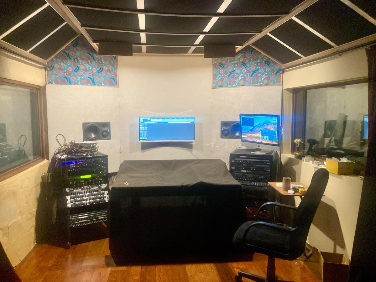 The wall on the right of the chair is cinderblock (beser brick) rendered both sides and hung with 2 layers of 16mm Fyrecheck drywall on acoustic hangers with tontine insulation hung 2cm off of the concrete floor.