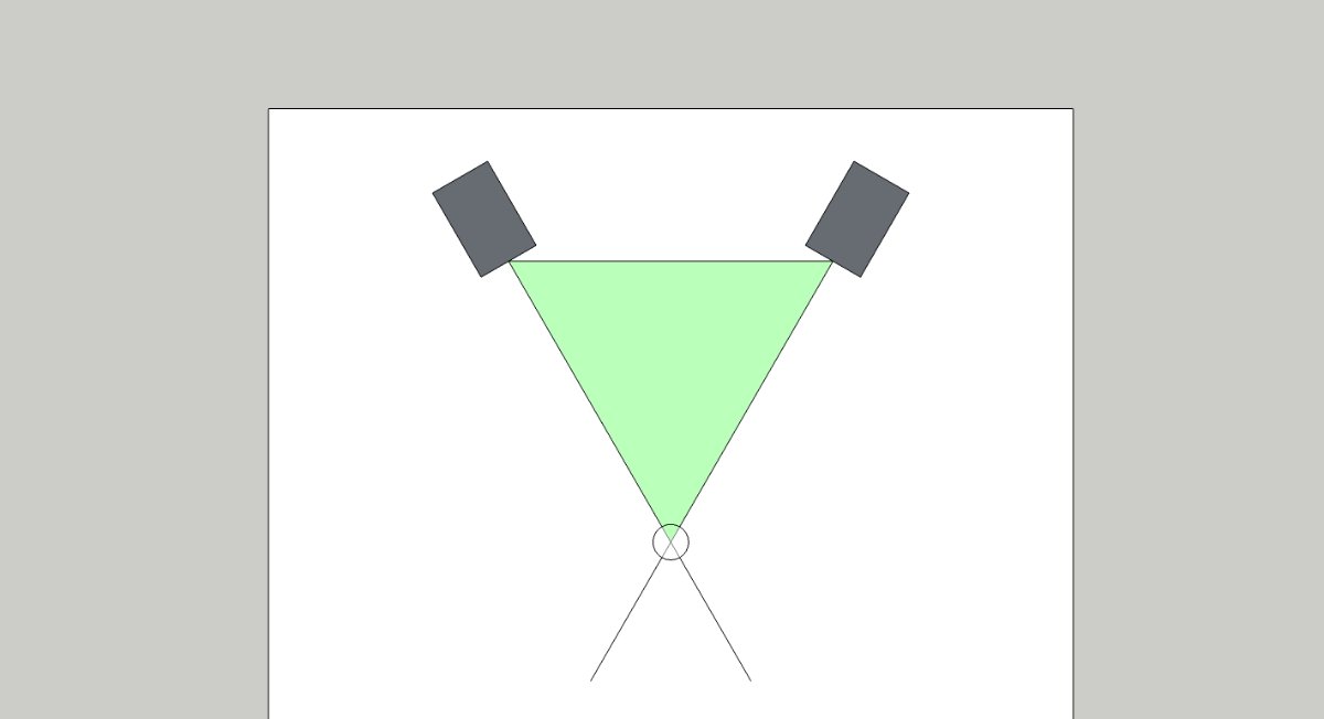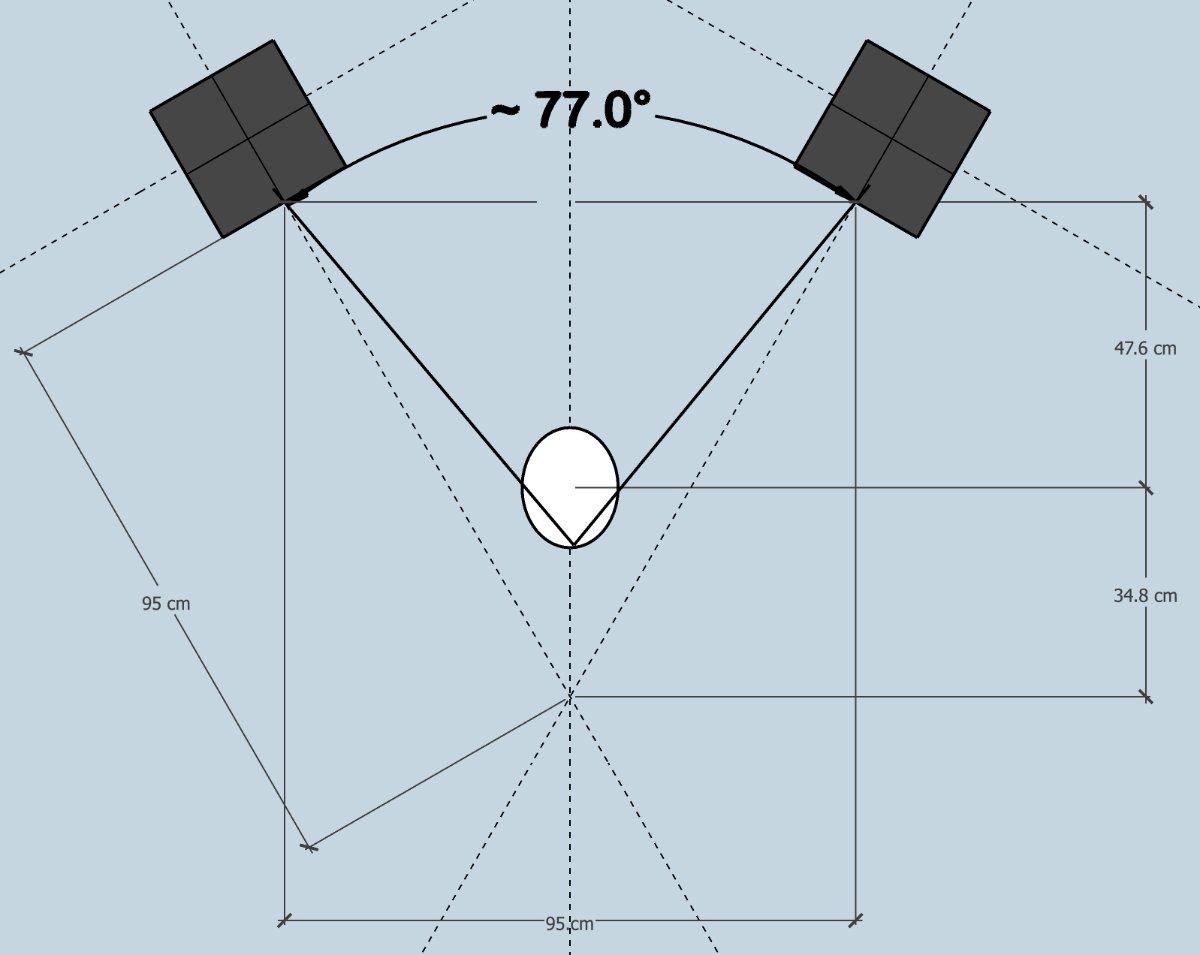On a side note: I applied the image your drew in my studio. Is it correct that in the example you draw the distance between the "point where the two acoustic axes of the speakers" meet and the "listening spot (aka the equilateral triangle) is around 29cm (11,4 inches). It seems a bit much whereas the distance between your ears is only around 18cm (7 inches).