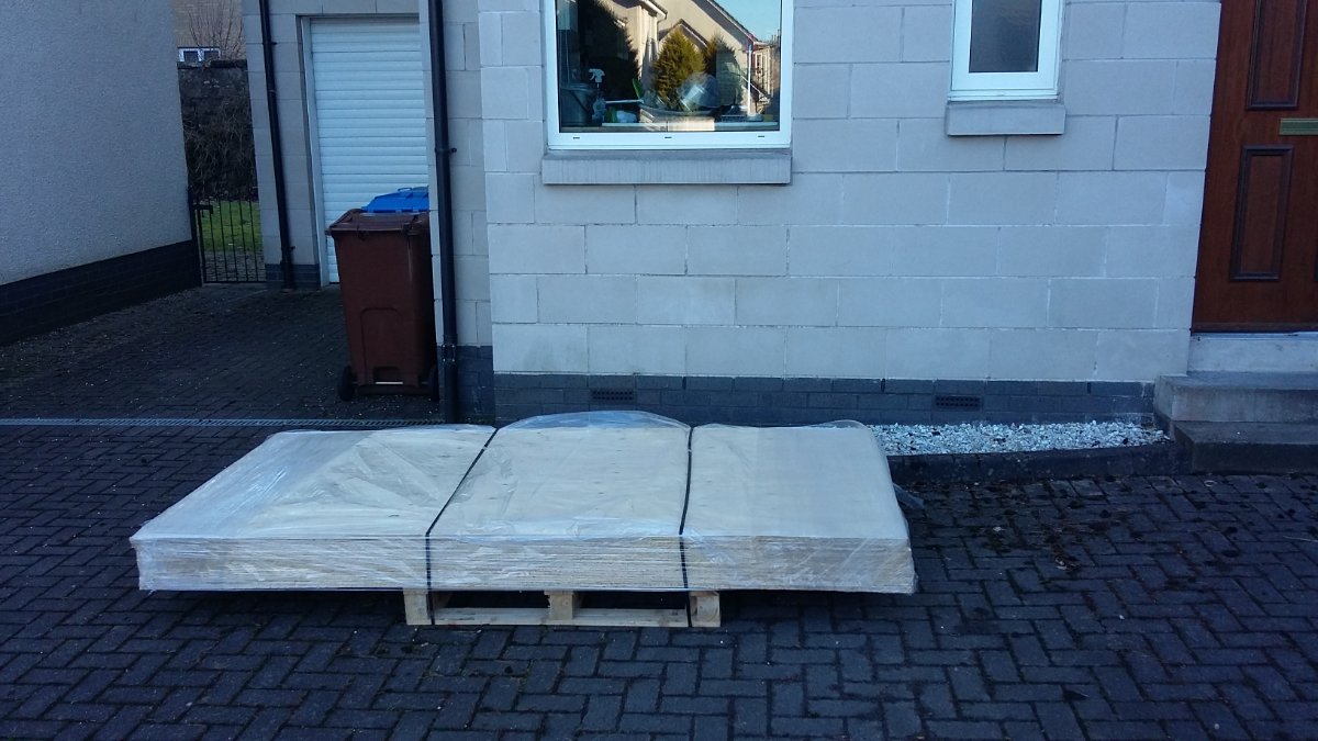 The palette of OSB and plywood arrived today from the builder's merchant, exciting stuff. Plasterboard should hopefully arrive soon too.