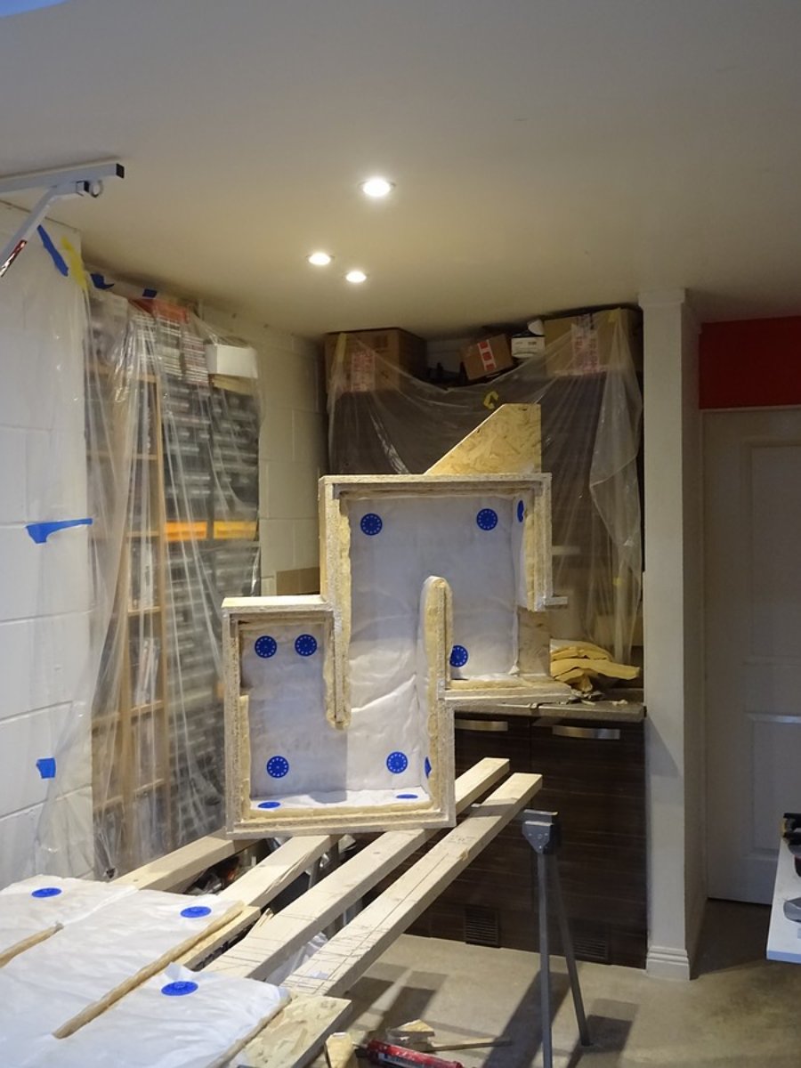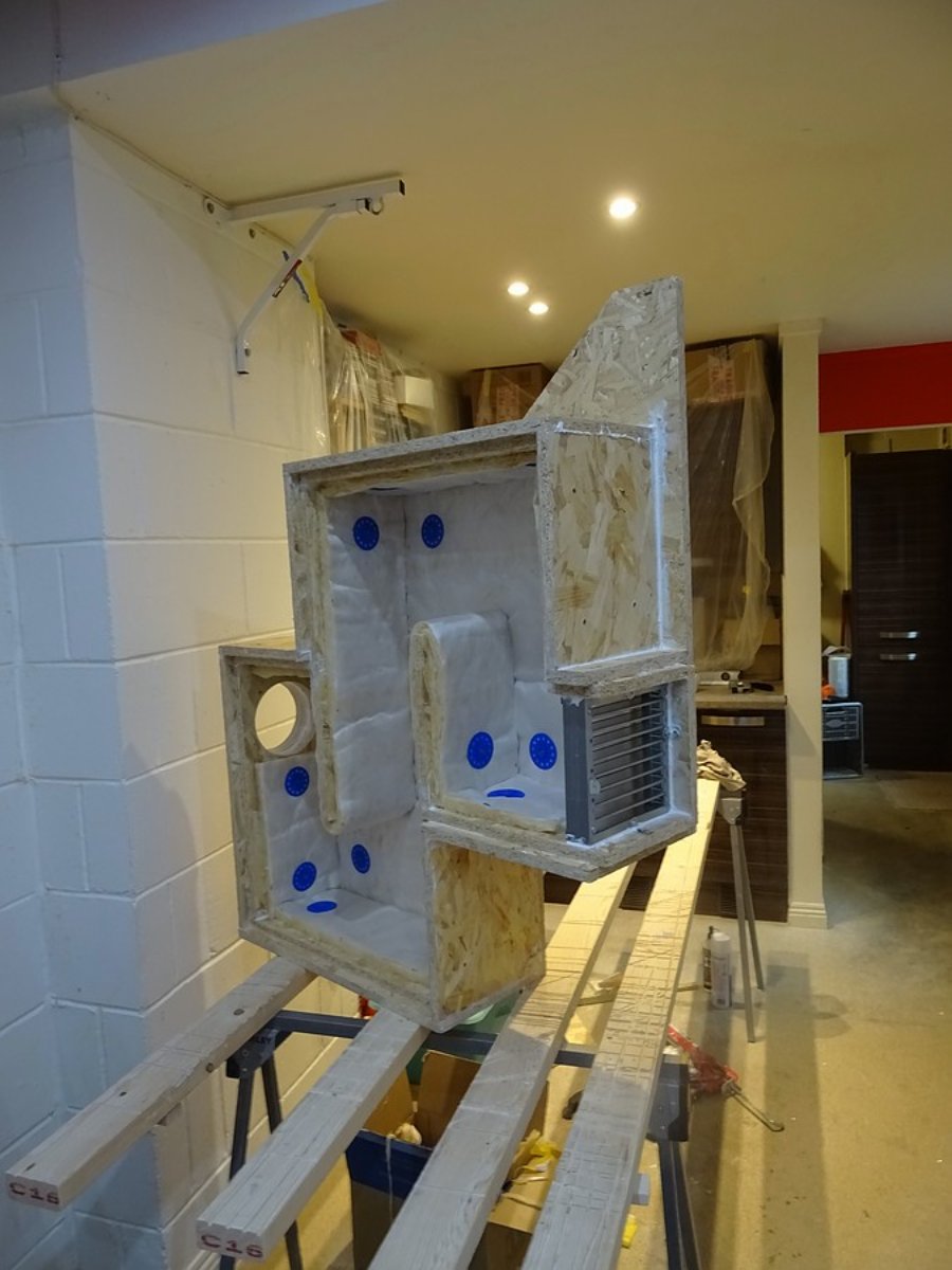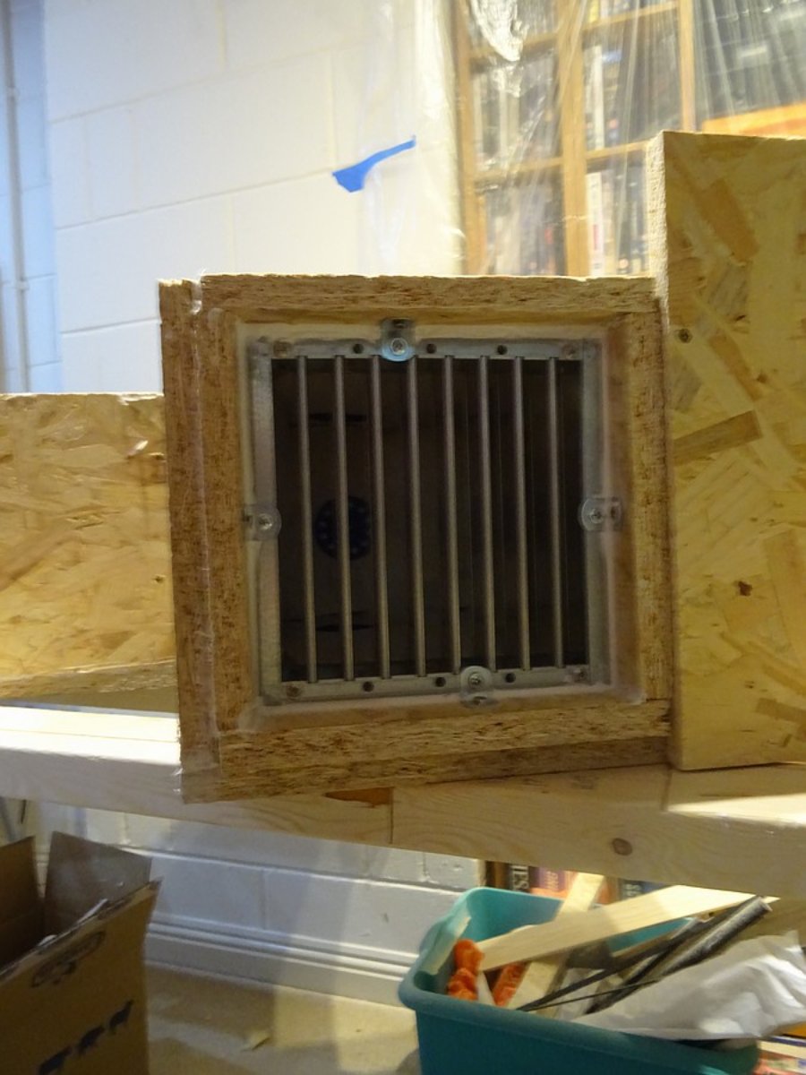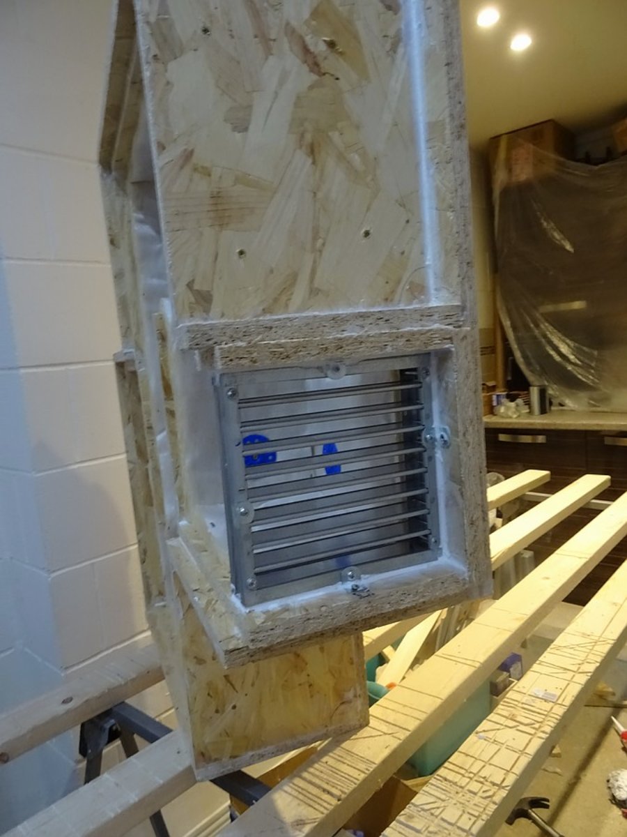 Just temporary bracing to test and allow fitting of the proper OSB layer. I'll cut the bottom half to go around the grille, and the top half to go above that.