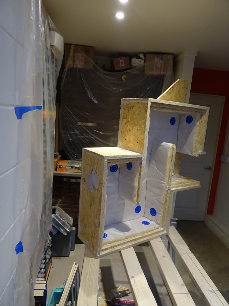 And there are so many of these lines several times on every join to do the stepped "bank vault" seal properly. Three I think, for the two layers. The combined length of seams on the silencers and built in bass traps must be epic. I anticipated using a lot of sealant, but not that much!
