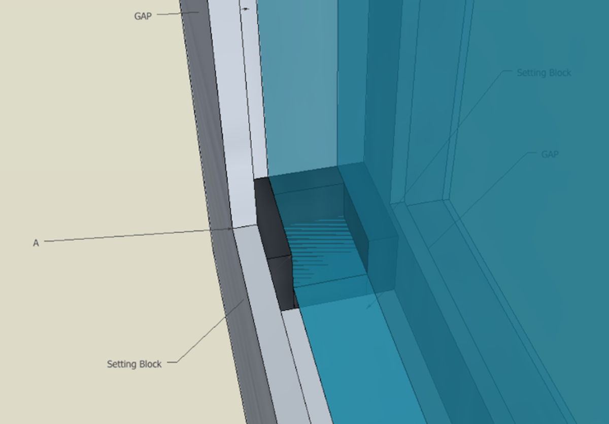 5. Would it be preferable to use glazing tape (VHB structural glazing tape) where the glass faces piece B and C, putting setting blocks only on the perimeter of the pane?
