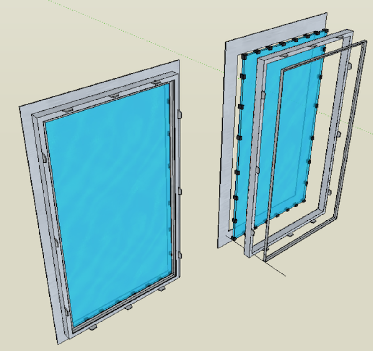 gullfo wrote:Source of the post another option (and you see this in commercial windows) - the main part of the frame if solid and stiff, then a lighter part of inserted which applies pressure to the seal. see picture. the stiff outer frame is assembled as either 2 or (more commonly) 4 pieces which tensions the lighter part as the sections are tightened together. so basically - attach the bottom and siides, slide in the laminated glass and the light portion, then attach the top.