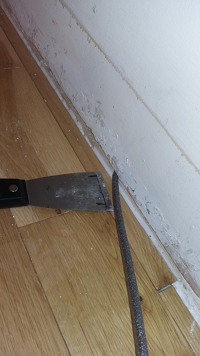 Addressing the crack along the rear wall / floor corner more or less as per Stuart's instructions.