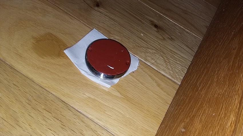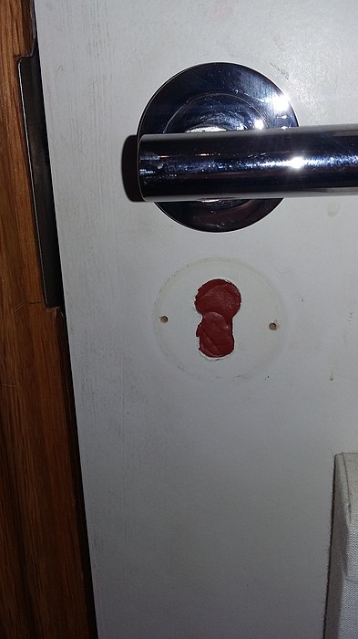 A black plastic square so it still looks a bit like a keyhole rather than red putty;