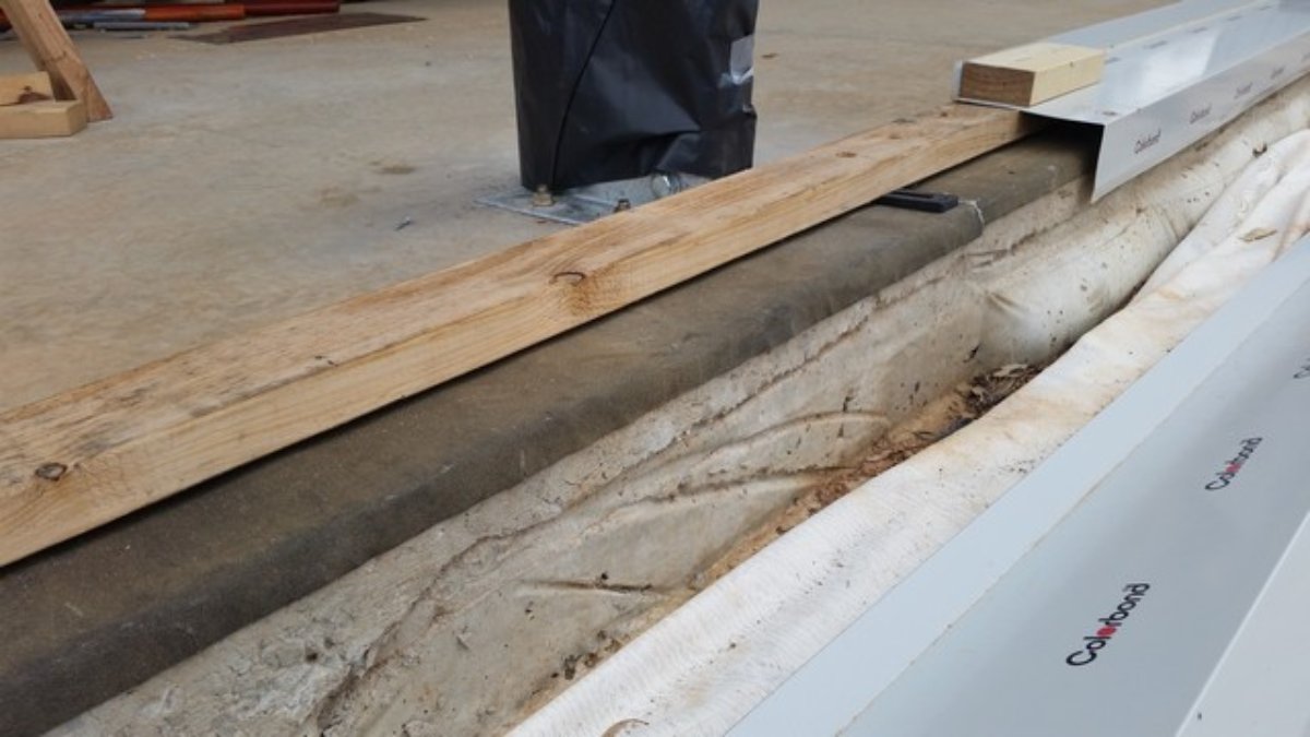 In terms of shifting in outer wall frame position to accommodate the mass outside – my first reaction was that I’d have to have to replace the metal sills I’ve got sitting on top of the treated base plate (pic below) – they have been rolled to suit the current frame position – they only just overhang the slab so won’t push inside further.