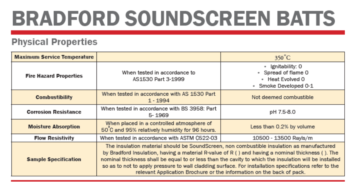 4. The insulation I’m using behind the metal sheet cladding has a lower GFR than I was proposing in earlier posts – I’d stuffed up the price comparison so the Bradford Soundscreen I was looking at will have to wait until its broadband absorption time.