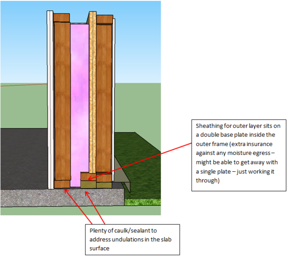 2. I plan to make the outer wall mass larger than the inner. While feedback has been that my steel sheet cladding shouldn’t pose a material 3rd leaf issue, I know that the best way to deal with 3 leaf issues is to bump up the mass on the middle wall;