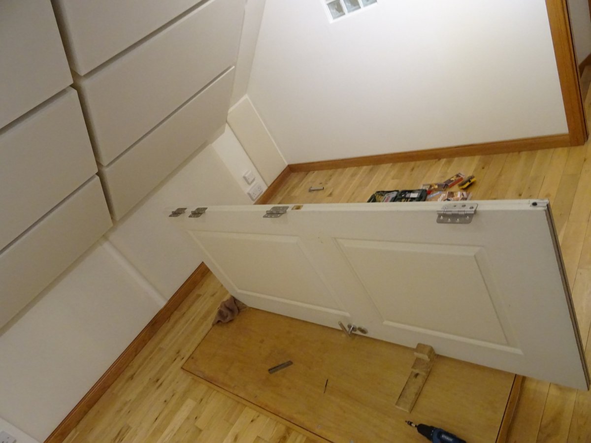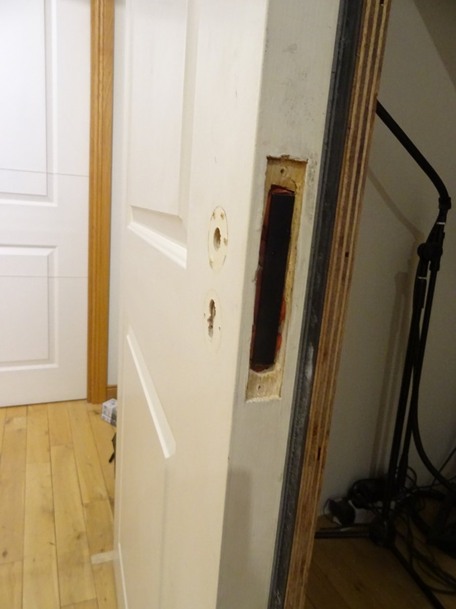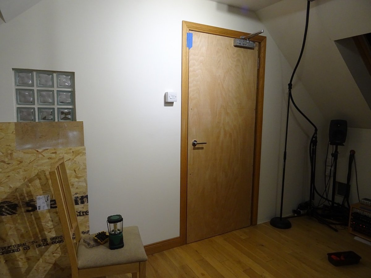 Next jobs are to remove the door, remove the face, fit the MLV, sand the face, Danish oil the face, put all back together, then rehang.
