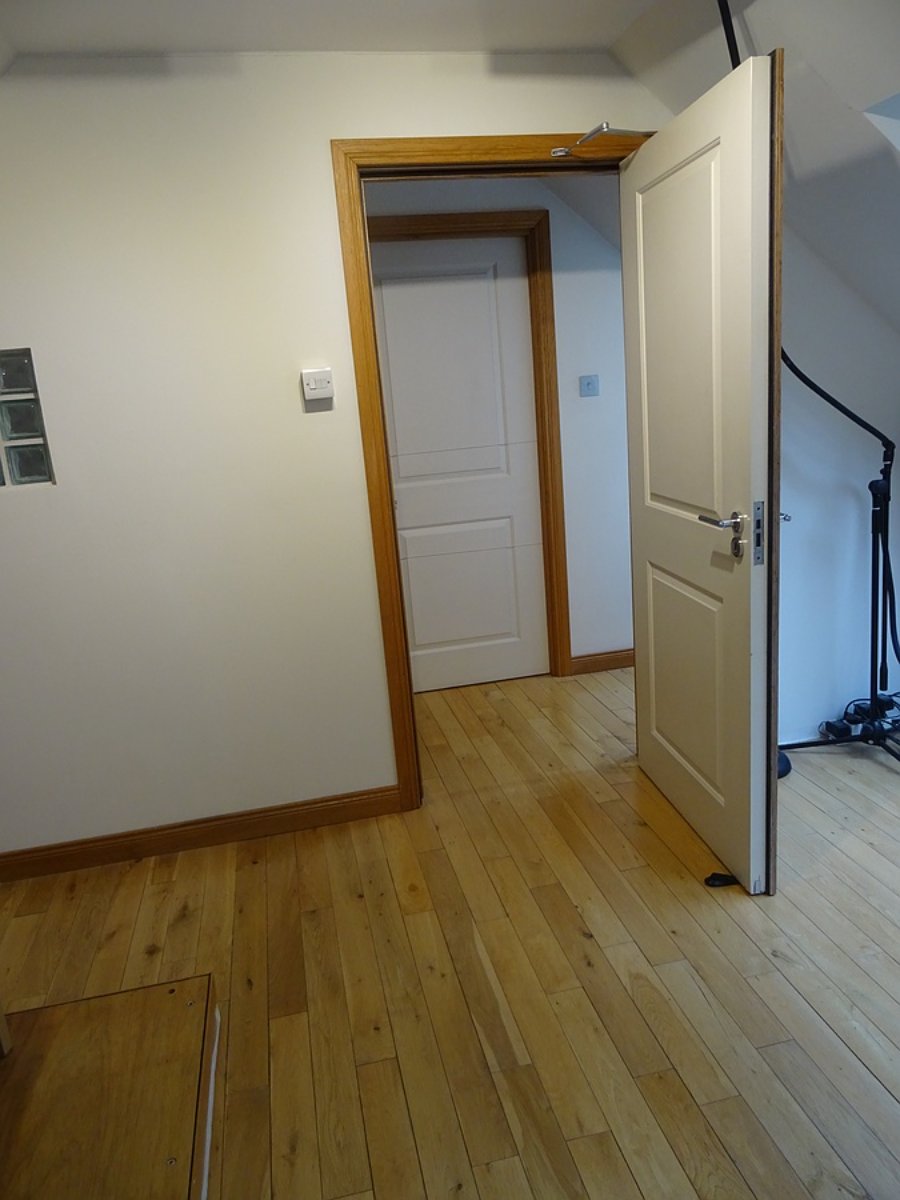 Here's a couple of photos of the normal side of the door. It goes onto our landing, and having that side of the door kept as the normal panel style makes it in keeping with the rest of the house. It just looks like an ordinary door.