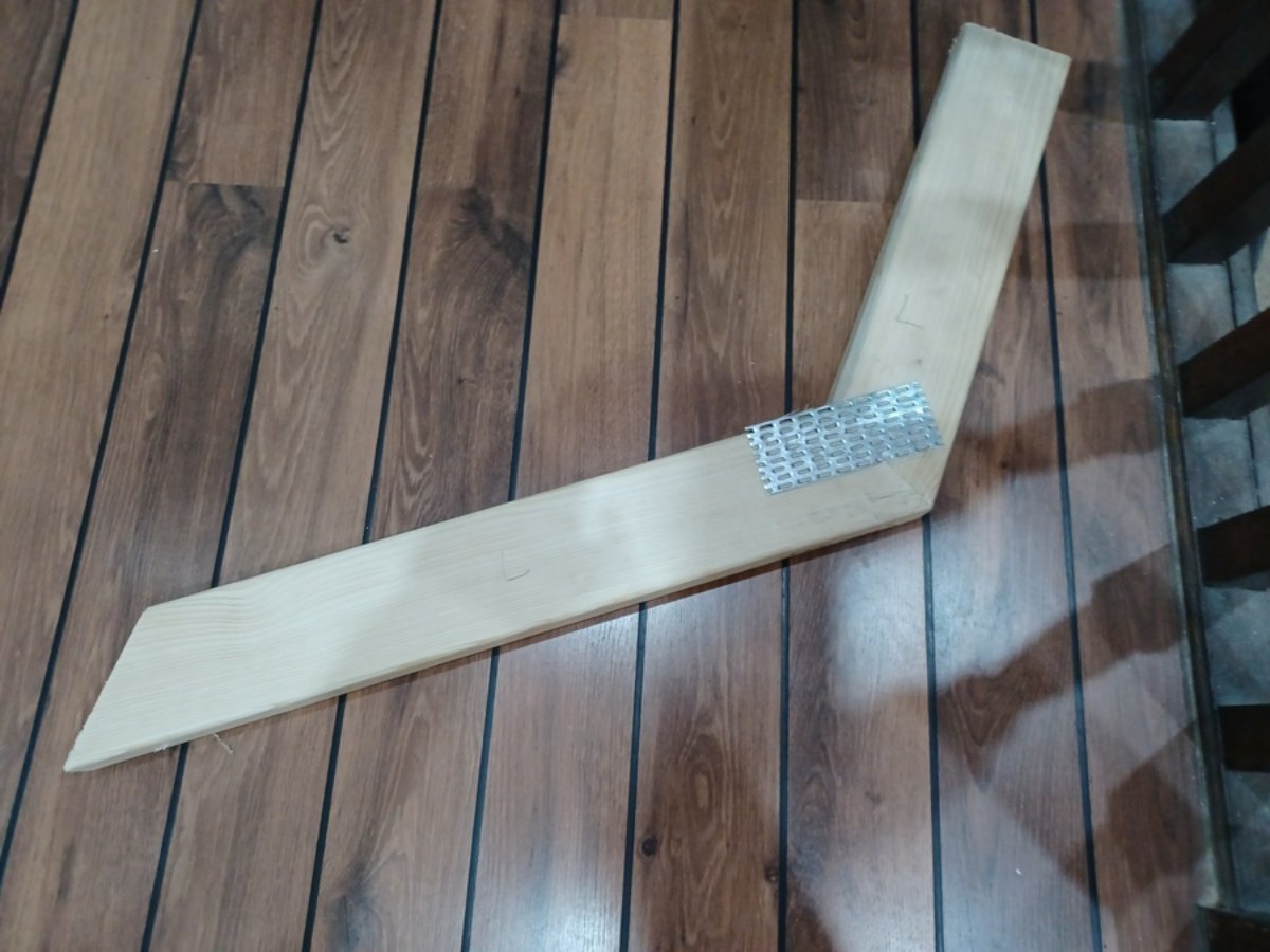 I had to make a couple of wedges to bring the surfaces into parallel to attach the sway brace. It looks a bit rough but the join and structure is very stable.