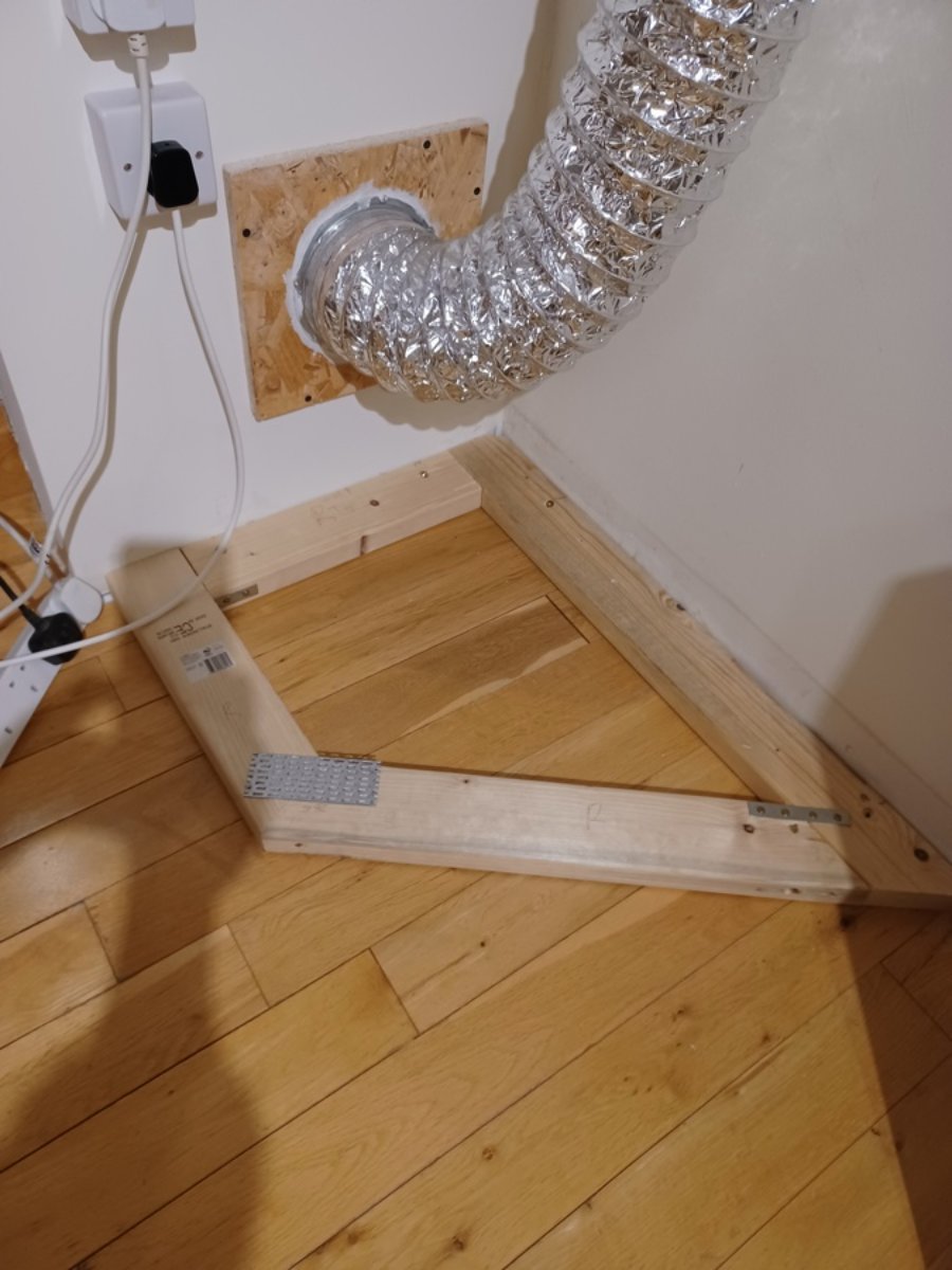 The sway braces arrived so I was able to carry on building the soffit structure. The leftmost vertical is the one with the sway brace. I left a small gap between the top of this and the ceiling / rafter so they can move relative to each other if necessary.
