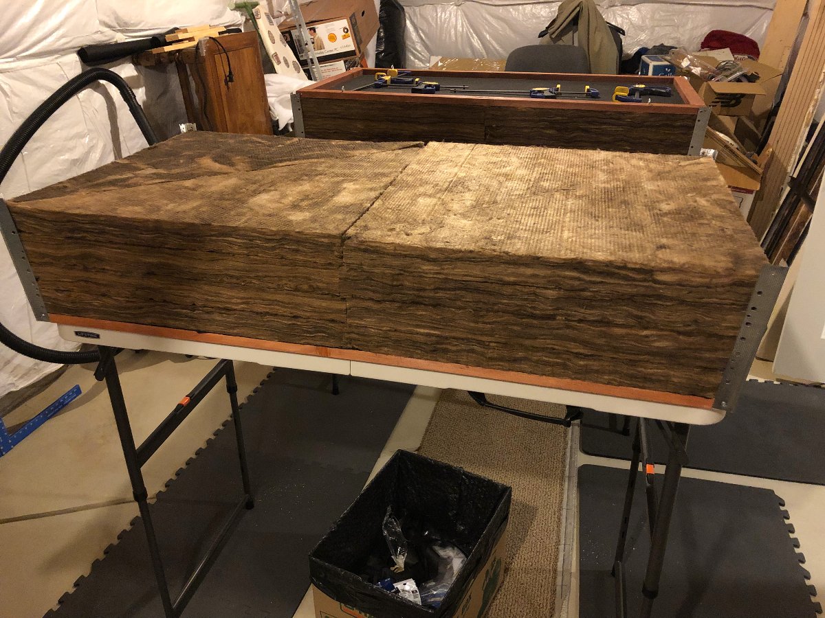 anyway ... I did a test assemble the other nite, filling the Cloud with KNAUF rigid into the 2' x 4' x 8" form [actually 9.5" to account for the wood frame].