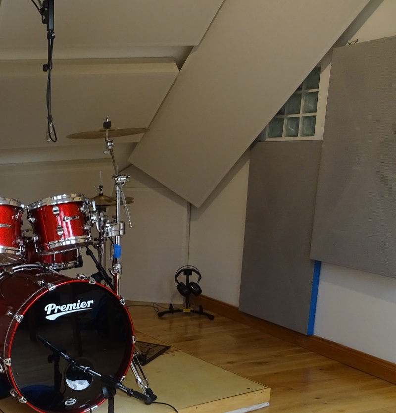 Room 1 is where I mix and record most things, including drums. Room 2 is used less frequently and usually only for quieter instruments, so reducing sound transmission from there is not as big a priority as room 1.