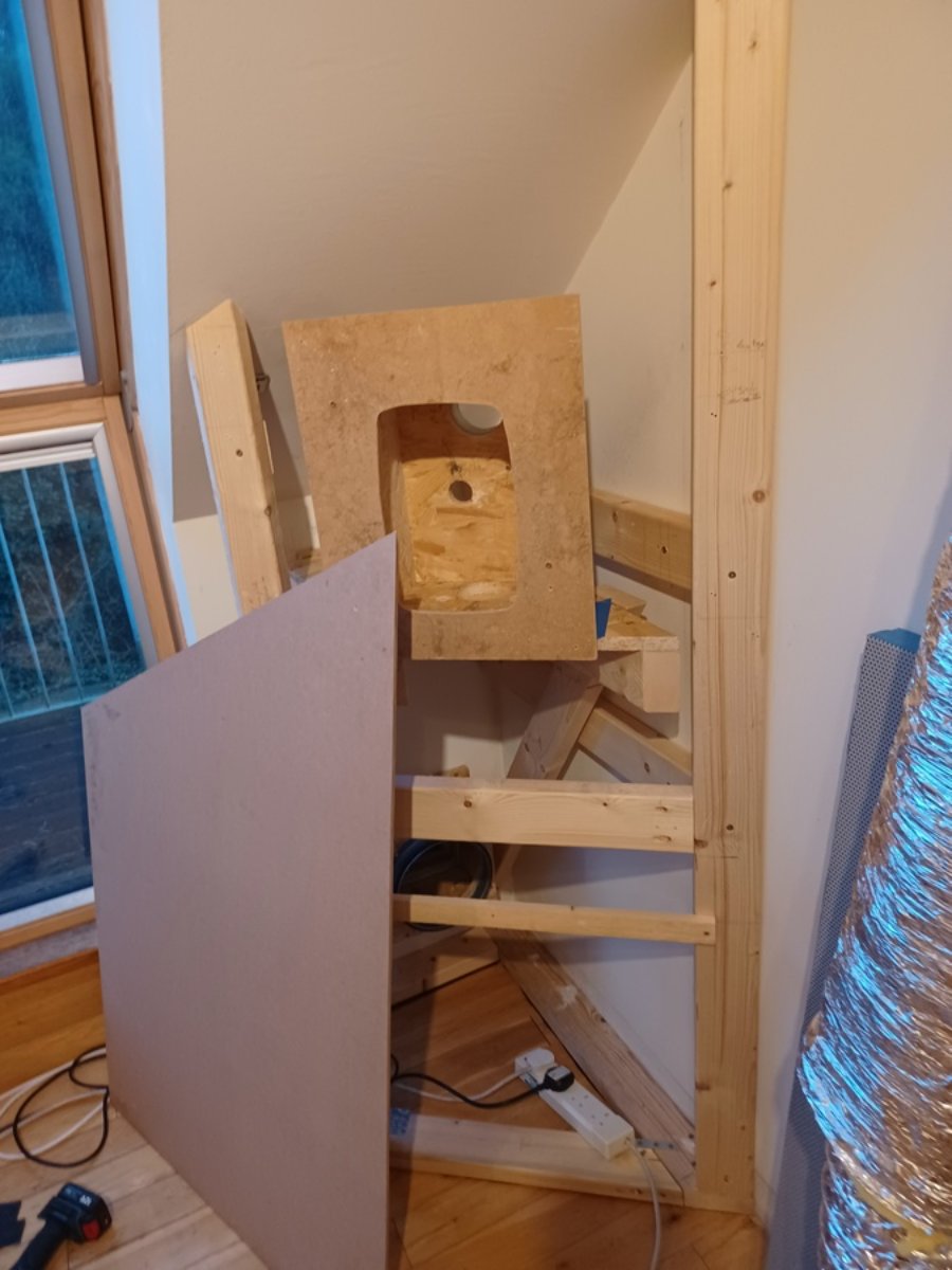 Getting the speaker boxes together. As Stuart suggested, I have some cooker hood insulation to line the inside of those to reduce resonances within the box. Fitting that will be fore another day though.