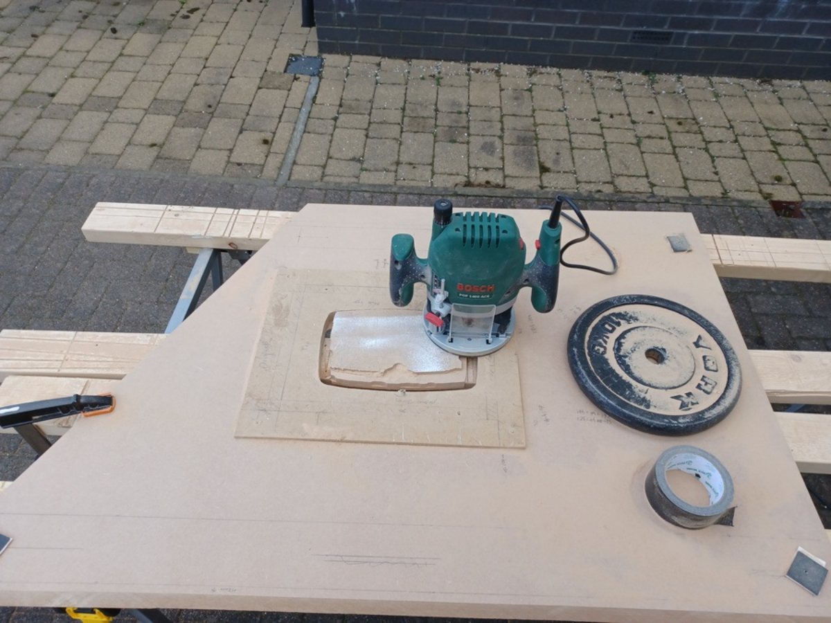 Route out the speaker hole using the template bit.