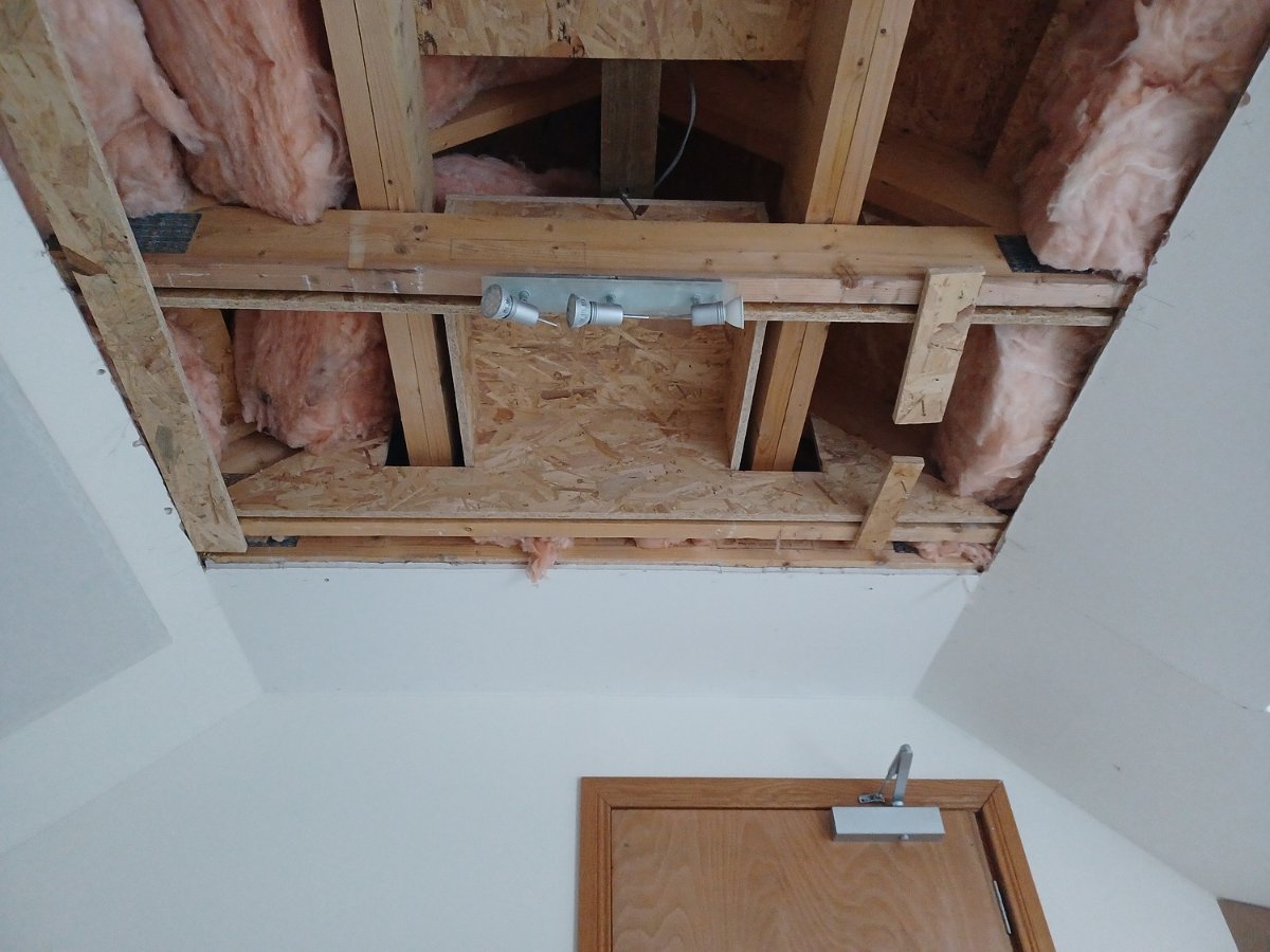 Thanks Glenn, that's reassuring, much appreciated. I've added some more screws from the sides of the modules to the rafters, a good idea in any case for heavy objects at height. Also done another round of sealing along along the joins between modules and the existing drywall. I've done this with backer rod followed by three thin layers with one day drying time in between rather than one thick layer all at once, which is more prone to crack when curing. Should be ready for drywall application tomorrow