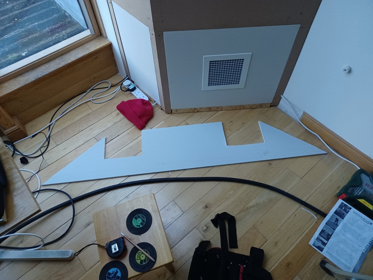 Tomorrow I'll seal the perimeters of the side panels and make a start on the remaining long thin strips. and adding a layer of plasterboard to the remains of the original ceiling at either side of the modules.