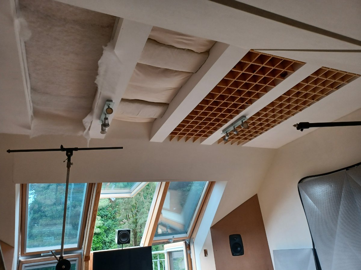Of course! Subjectively, the my ears tell me the frequency response in area below the absorbers and space couplers is more even than it was before. A recent drum recording under that area sounded excellent, best drum recording in the room to date. It would fit right into a mix without EQ, added ambience or anything. The ride cymbal sounded particularly amazing. Vocals recordings also sounding really good, in fact the singer mentioned it was better in here than in the usual other room, which has a similar shape but not this ceiling treatment.