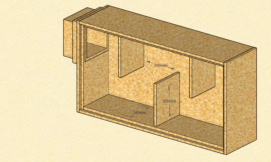 Since the eaves are a potentially damp place, the silencers will be made from OSB 3. The walls will be 36mm thick, and be built from two 18mm layers.