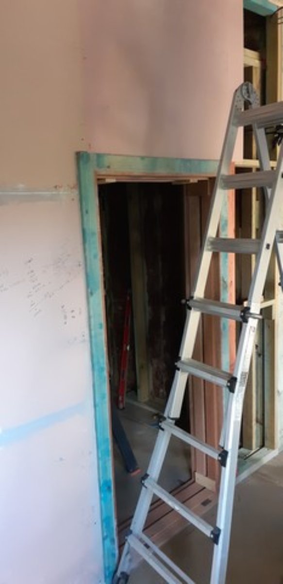 • Get the live room door frame in square and plumb (done!) - then add the extra stop bulk and the bank vault stops in situ;