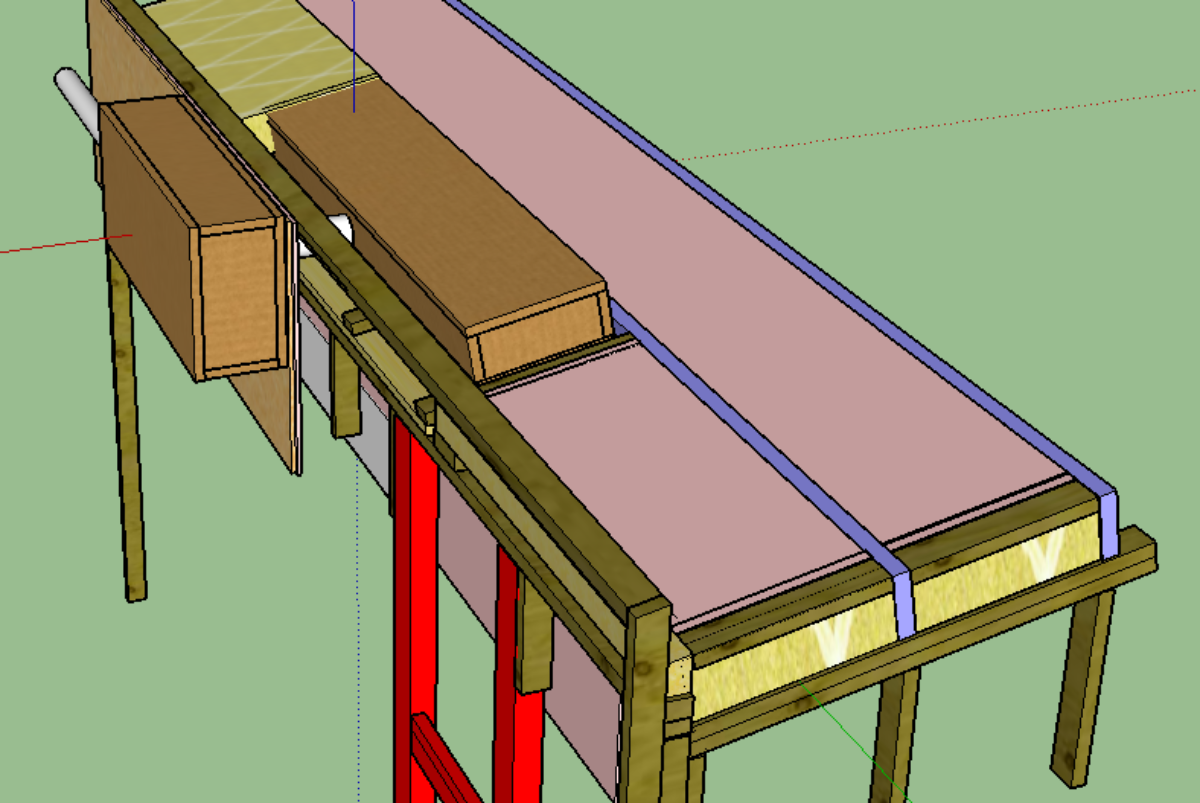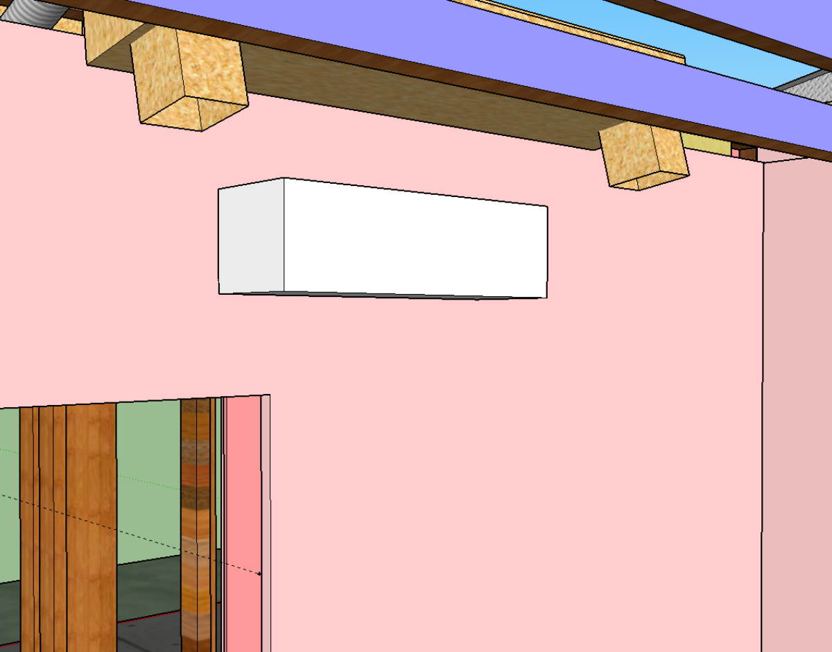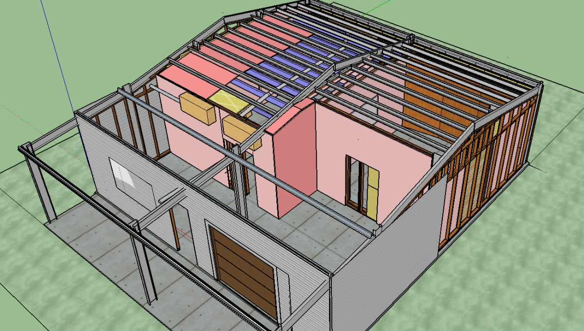 Here is the “big picture” plan. (Ignore the half-finished door spaces in the model. Also, there’s obviously tons of fluffy in the ceiling gap but I’ve left that out for clarity.)