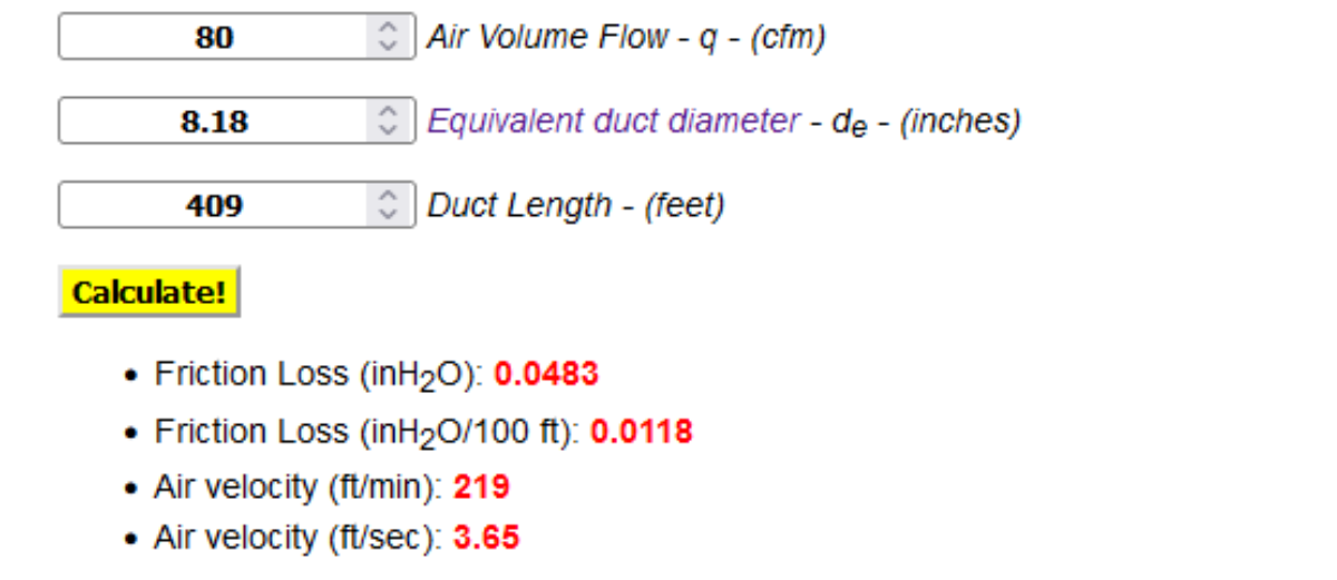 Using the engineering toolbox, I’ve calculated that the inner silencers would have an equivalent round duct diameter of 5.33 inches and the outer ones, 8.18 inches.