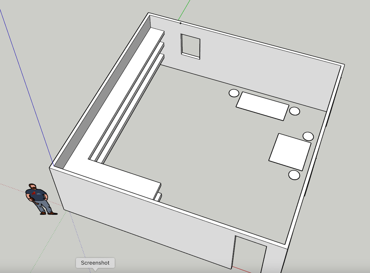 A few years ago someone helped design my acoustical panels in a bedroom. I now have got to move out of there and the only place I have to go is the garage. I have a crap ton of acoustical treatment from the old studio and will build whatever else I need. The old studio is 12'x9' . I attached a couple of photos of a crappy sketchup that I didfor the new place. The garage is and will be used for storage and shipping eBay and Amazon stuff. I dont care about the sound getting out or coming in. I want to acoustically treat the room to have a very good and even frequency listening environment and that is it. I dont do live drums just record vocals, guitar, keys. Obviously do alot of mixing and mastering.