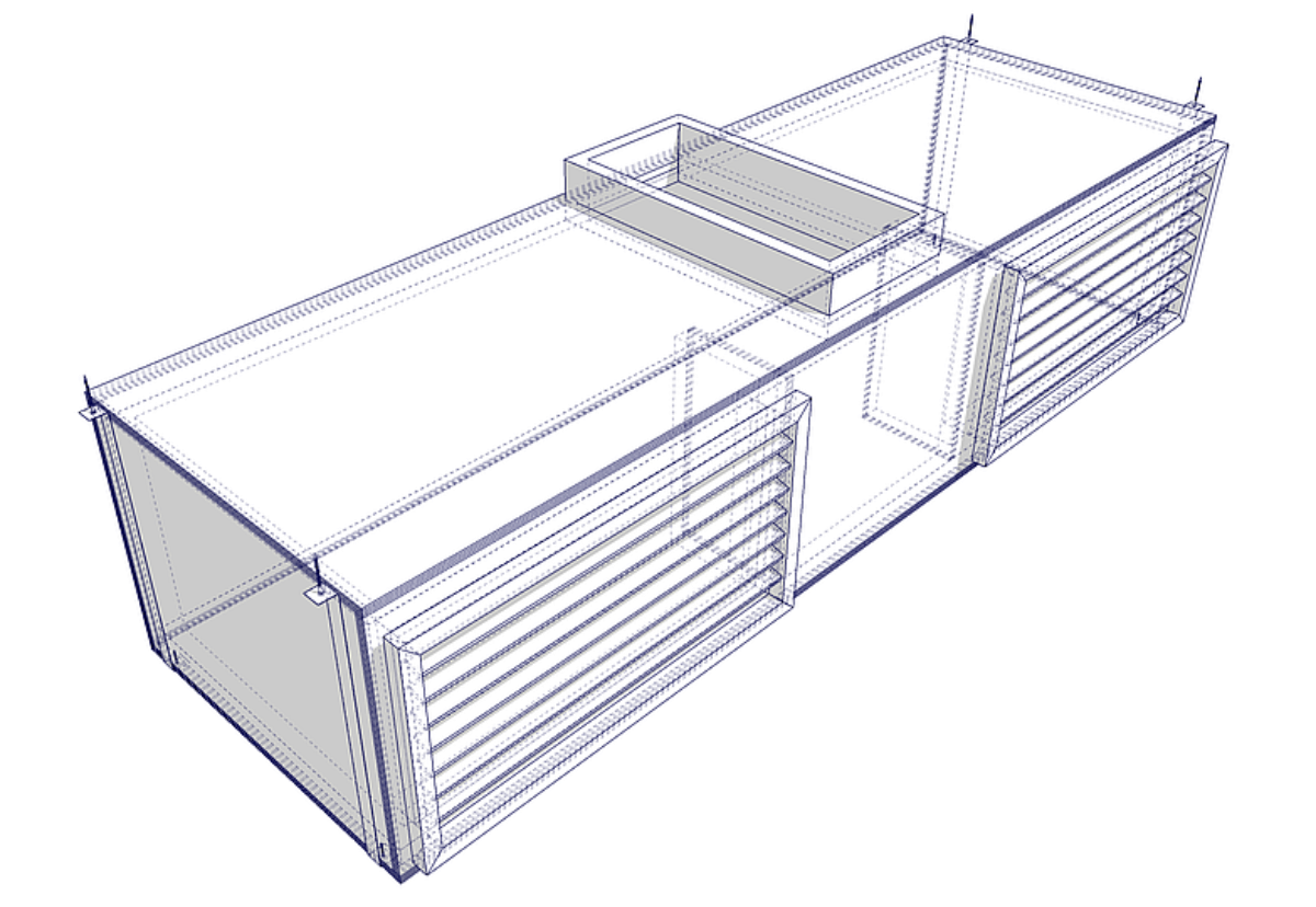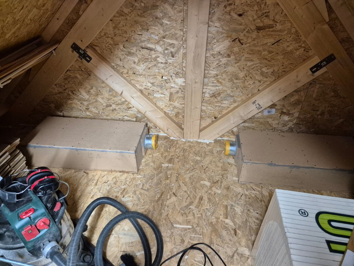 Made them from MDF and designed them to be around twice the size of the round 125mm duct. It sticks out 6 cm from the ceiling and I will cover this up with a ceiling cloud.