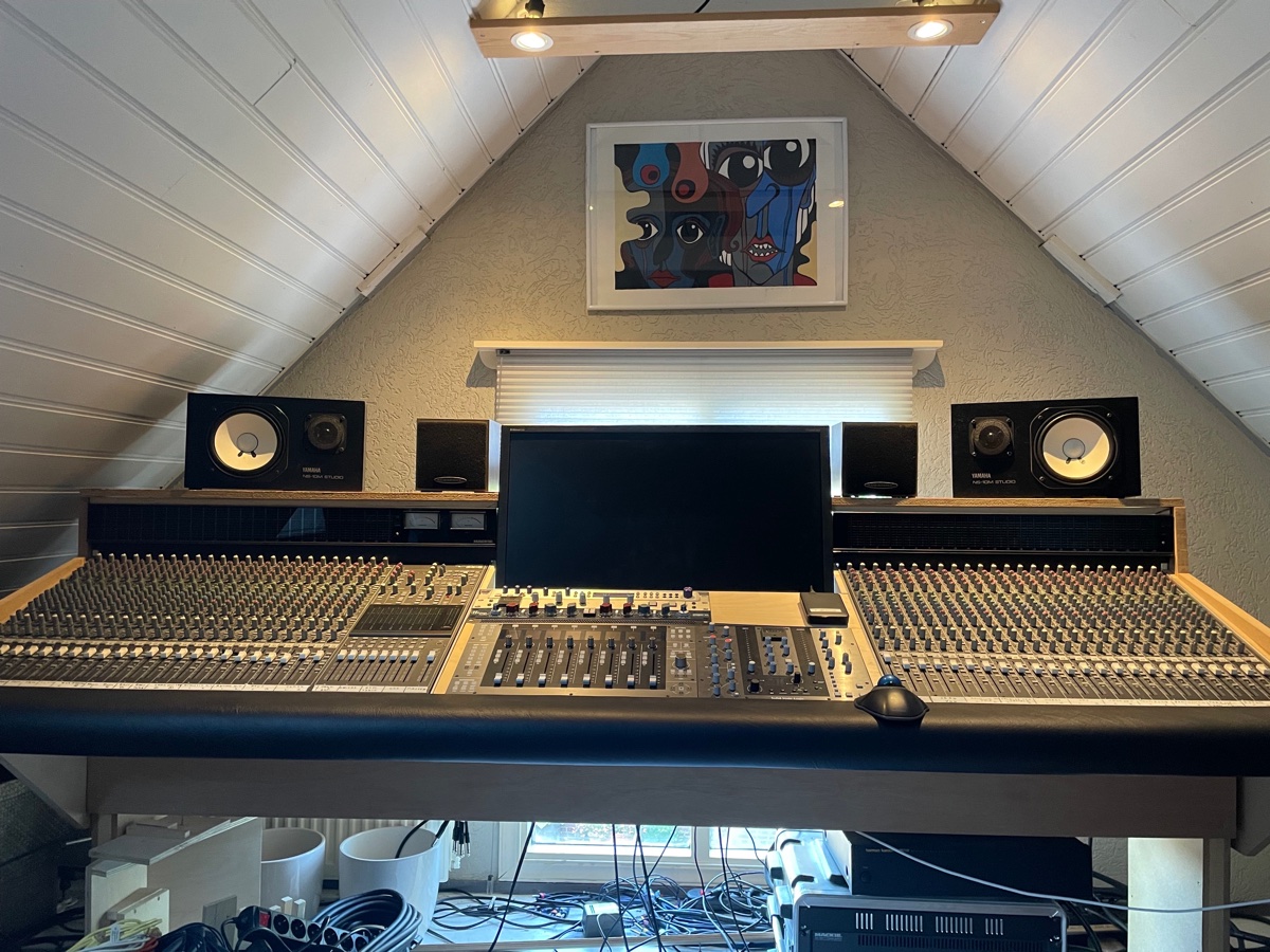 I have been waiting for this about 15 years, with the last 1,5 year in a temporary room under the roof of our previous (farm)house. It gave me time to think, collect my gear (started 8 years ago), build and changed the furniture of my mixing desk till it's current state I am really happy with.