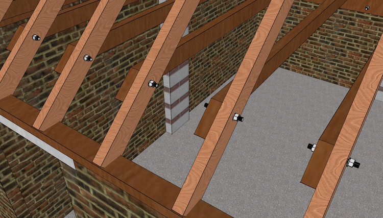 The existing ceiling chords will be bolted to the joists with M12 bolts.