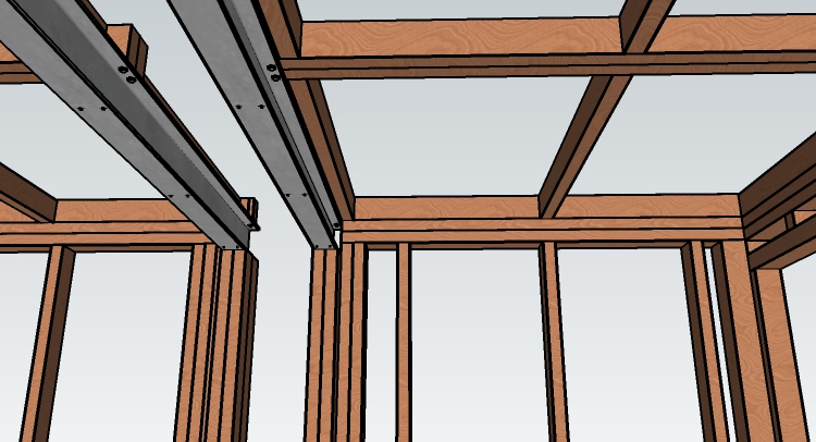 . . . in the area where the steel will be supported, I'd suggest adding extra noggins ever 16" (40cm), in addition to the ones at 48" (120cm).