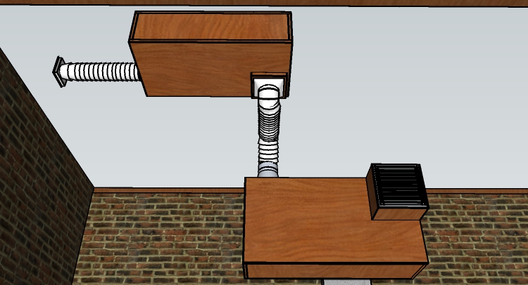 Also, for in-line fans, don't forget that you need to locate it some place where you can have easy access to it for cleaning, maintenance, repairs, replacement, etc. So don't install it between your two leaves, for example! Another option might be to use something like the Fantech units, that are mounted outside your outer-leaf: