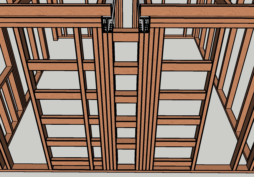 Right! Something like that. Gives it some more lateral stability (in sheer), and makes it a bit stronger overall.. . . in the area where the steel will be supported, I'd suggest adding extra noggins ever 16" (40cm), in addition to the ones at 48" (120cm).