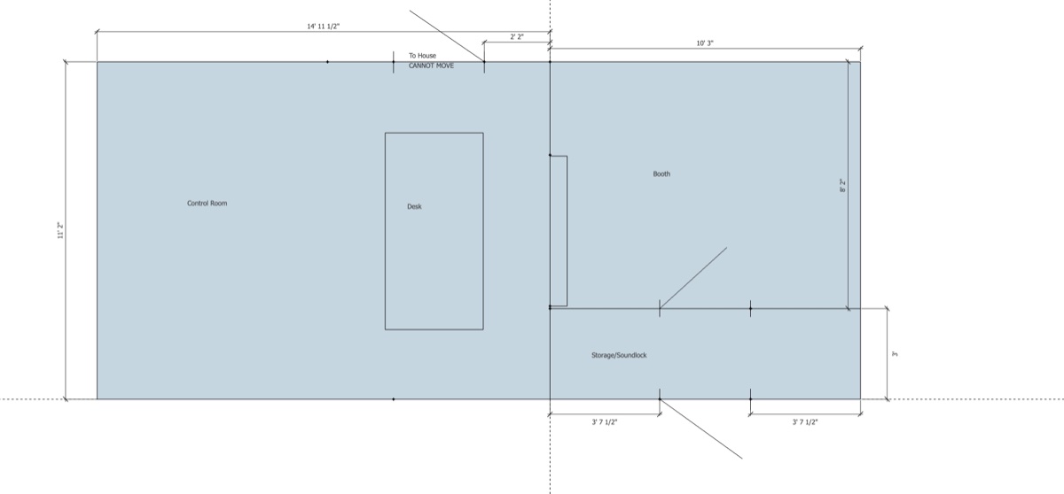 OR.... should I flip the control room around to face away from the sliding glass door? I was thinking about it and if we did it that way the roof could probably start low, but get even higher as it heads to the booth.