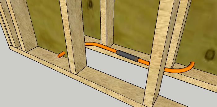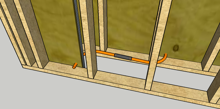 6. Speaking of cables above, the electrical cables and the audio cables will be running through the attic and dropping down the walls. What's the usual method? Drill holes through the top plate to drop down the cable? Then caulk it? Or should I try to drop them between the inner and outer walls?